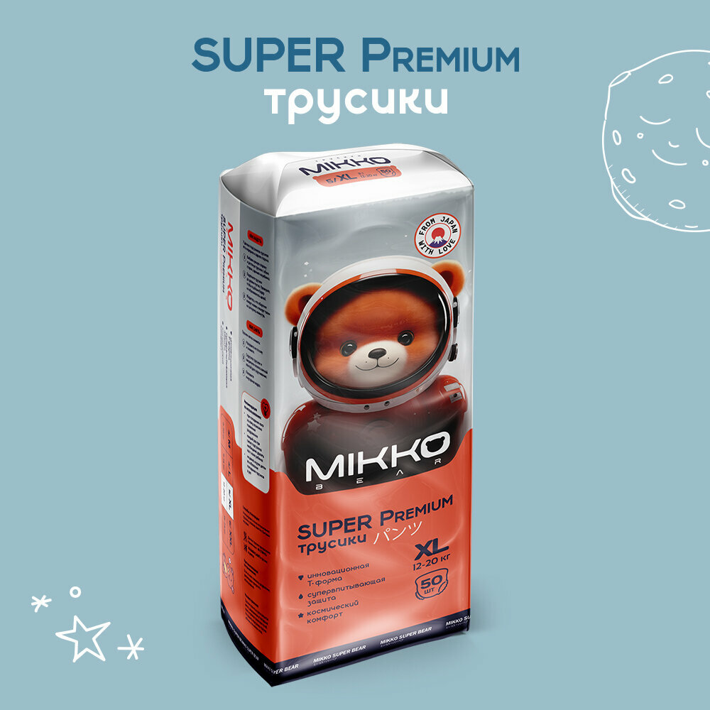 Купить Подгузники-трусики для детей MIKKO Bear Super Premium XL (12-20 кг) 50 шт