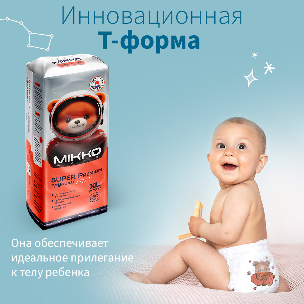 Подгузники-трусики для детей MIKKO Bear Super Premium XL (12-20 кг) 50 шт интересное:
