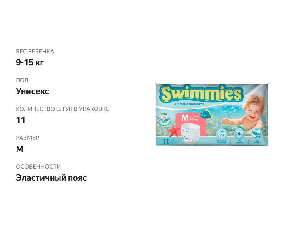 Трусики для плавания Swimmies, 9-15 кг, 11 шт, размер М, детские