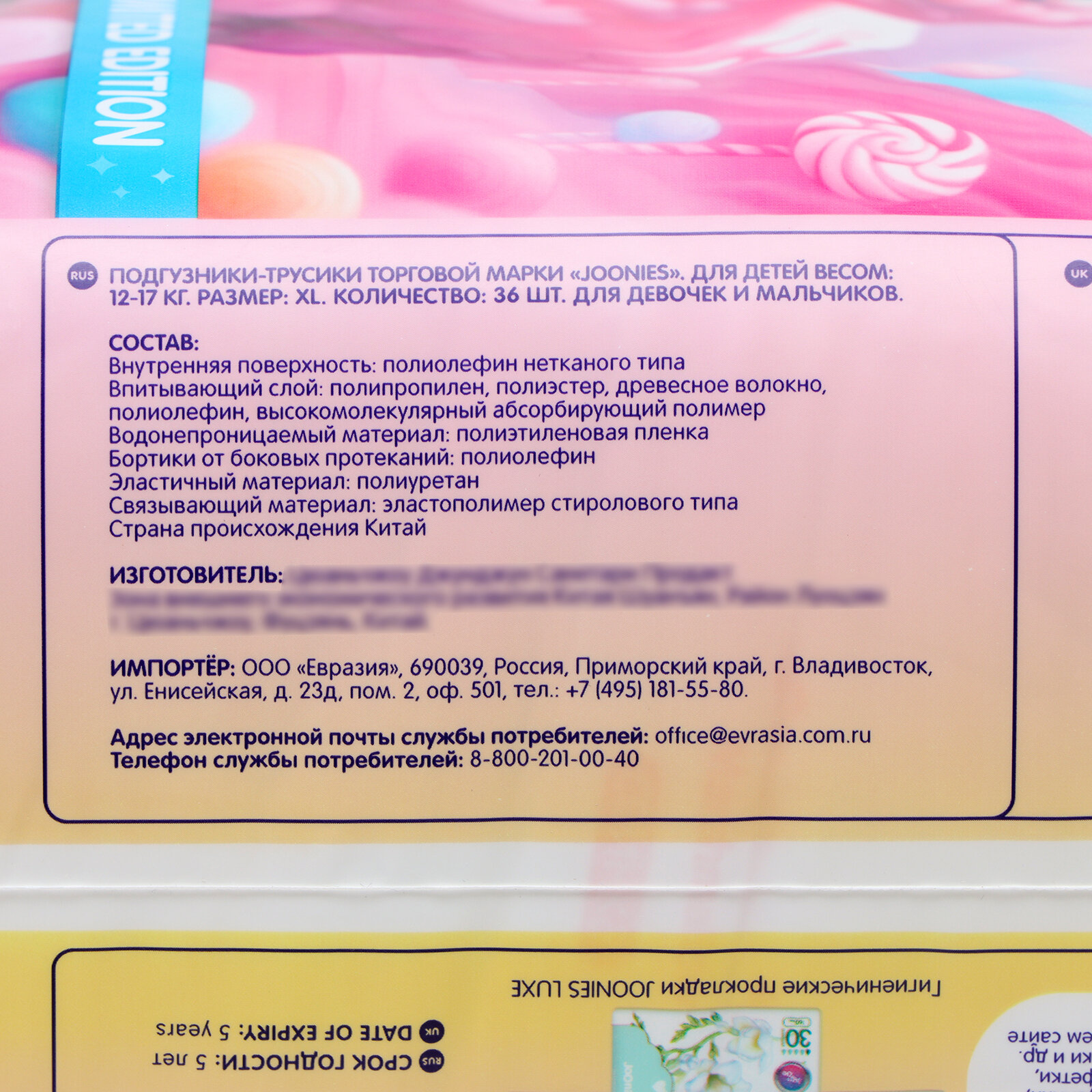 Подгузники-трусики JOONIES Marshmallow, размер XL (12-17 кг), 36 шт.