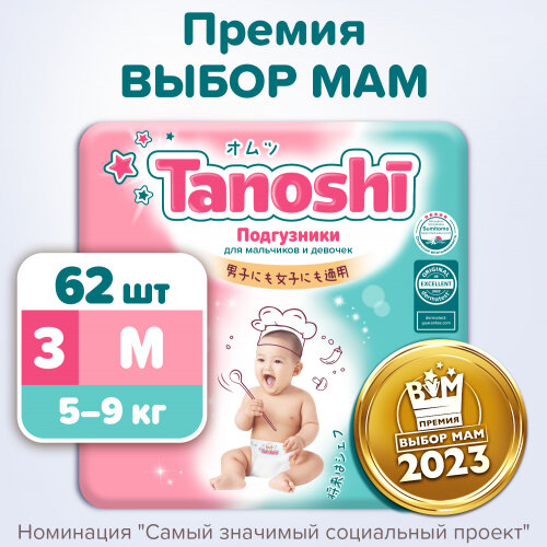 Купить Подгузники Tanoshi , размер M 5-9 кг, 62 шт