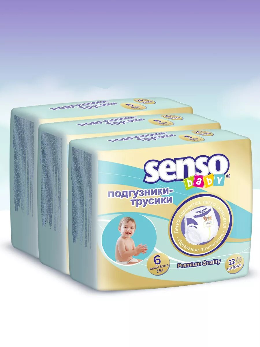 Подгузники трусики Senso Baby детские, 6 размер, весовая группа 15 кг+, дневные и ночные, 22 шт, голубой