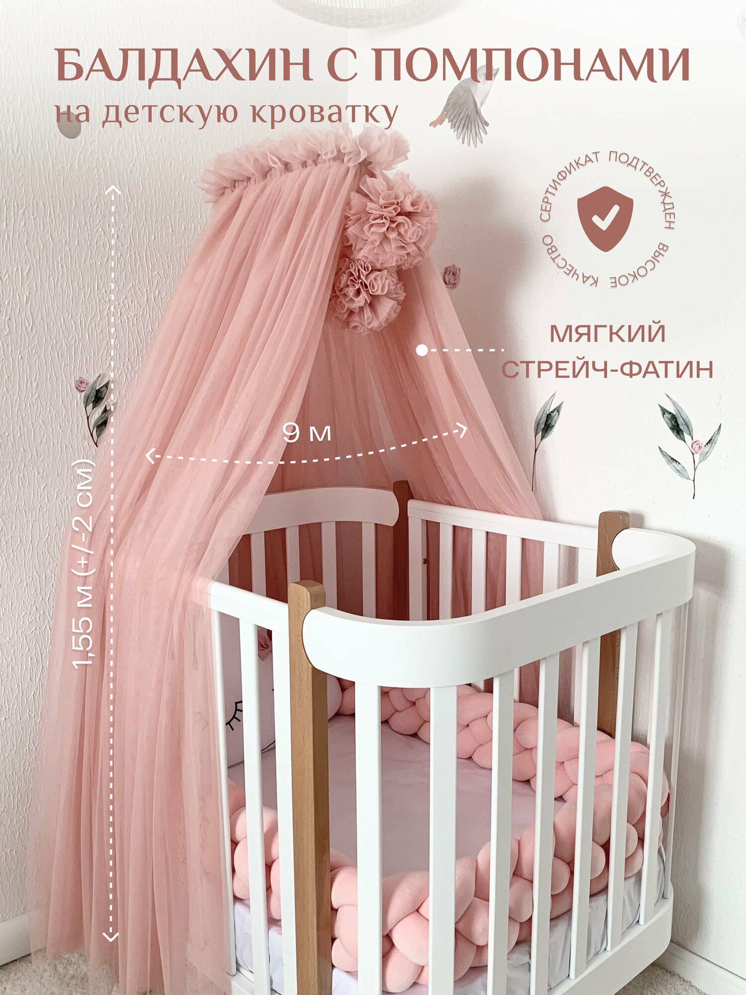 Купить Балдахин на детскую кроватку с помпонами, фатин, нежная пудра
