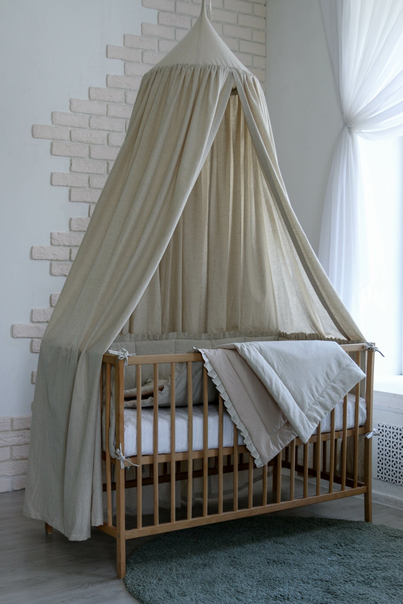 Шатер балдахин с держателем для кроватки, лен, бежевый интересное: