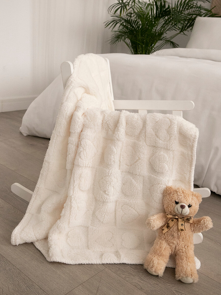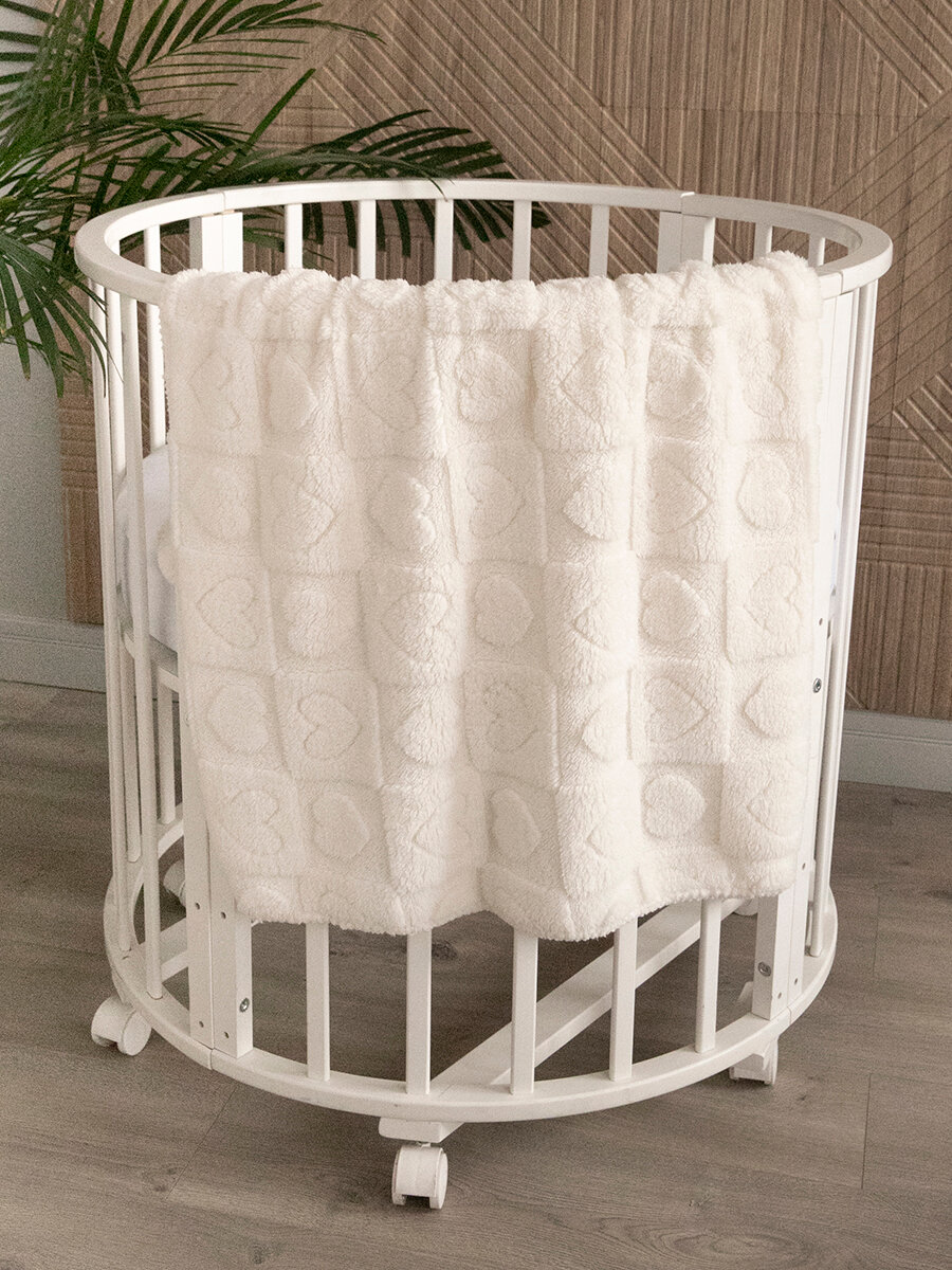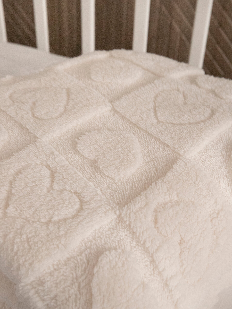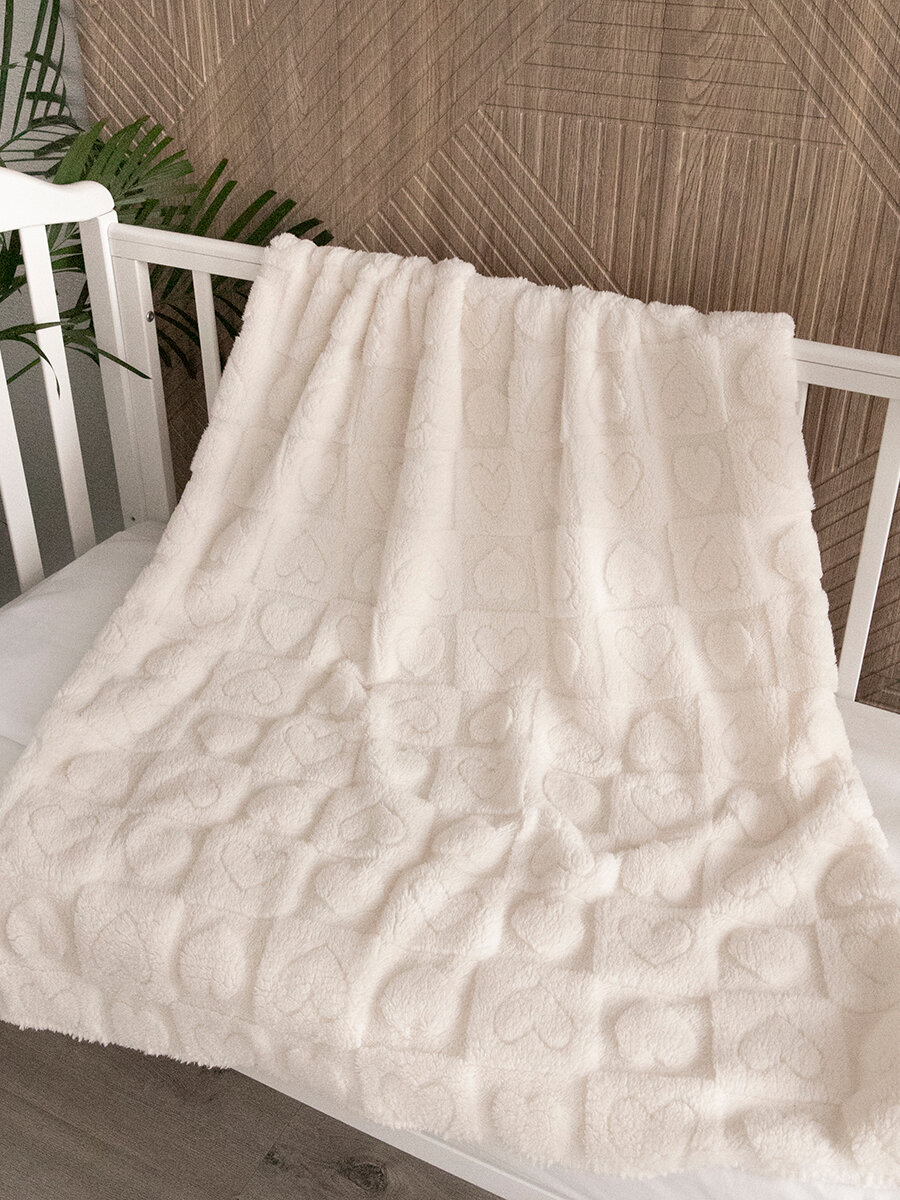 Купить Плед для новорожденного 75х100 пушистый детский в кроватку плюшевый, Сердечки молочный