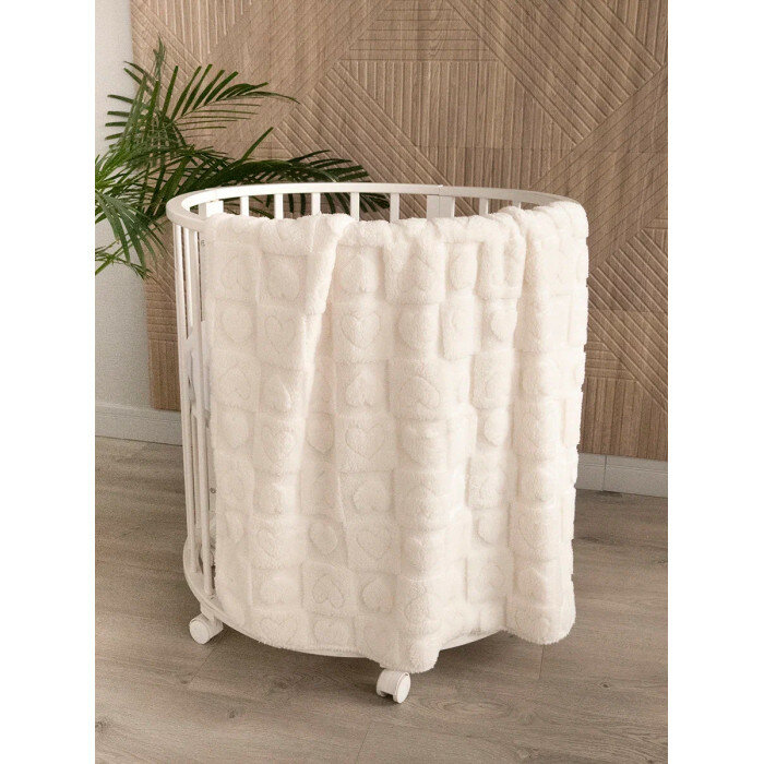 Плед для новорожденного 75х100 пушистый детский в кроватку плюшевый, Сердечки молочный интересное: