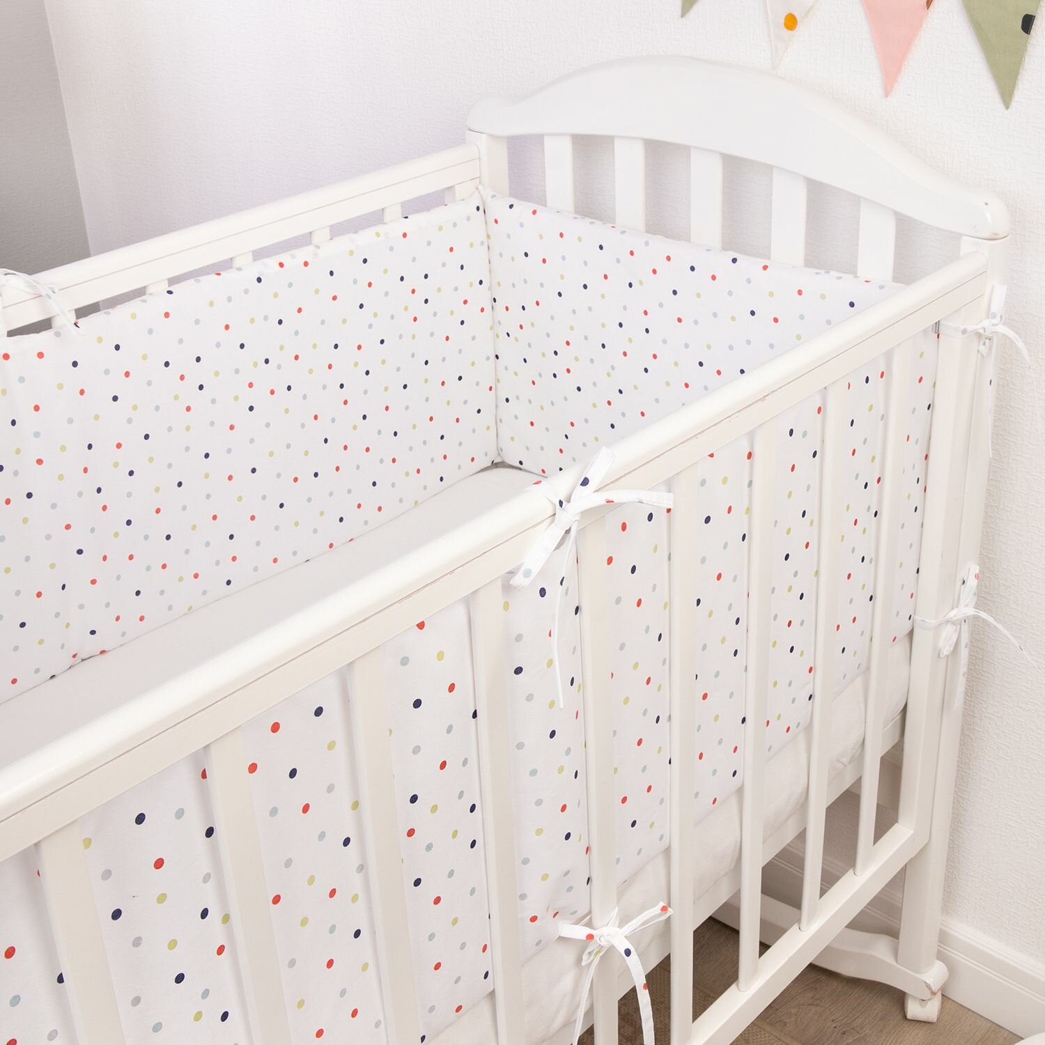 Купить Бортики в кроватку для новорожденных. Съемные чехлы на молнии "Разноцветный горошек "