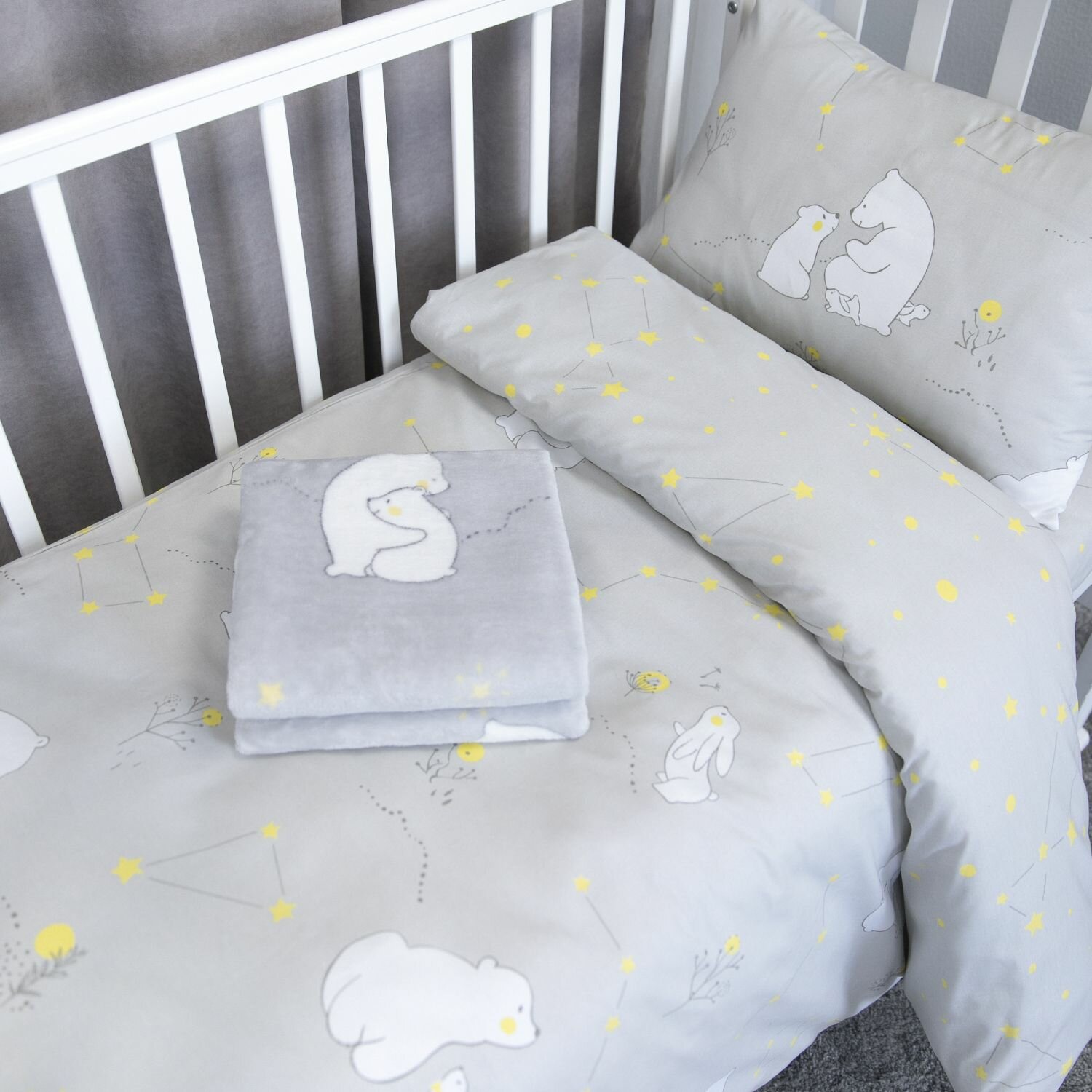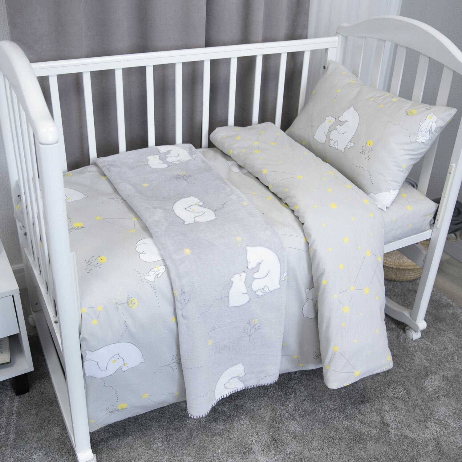 Купить Постельное белье в кроватку для новорожденного + плед "Мишутка"