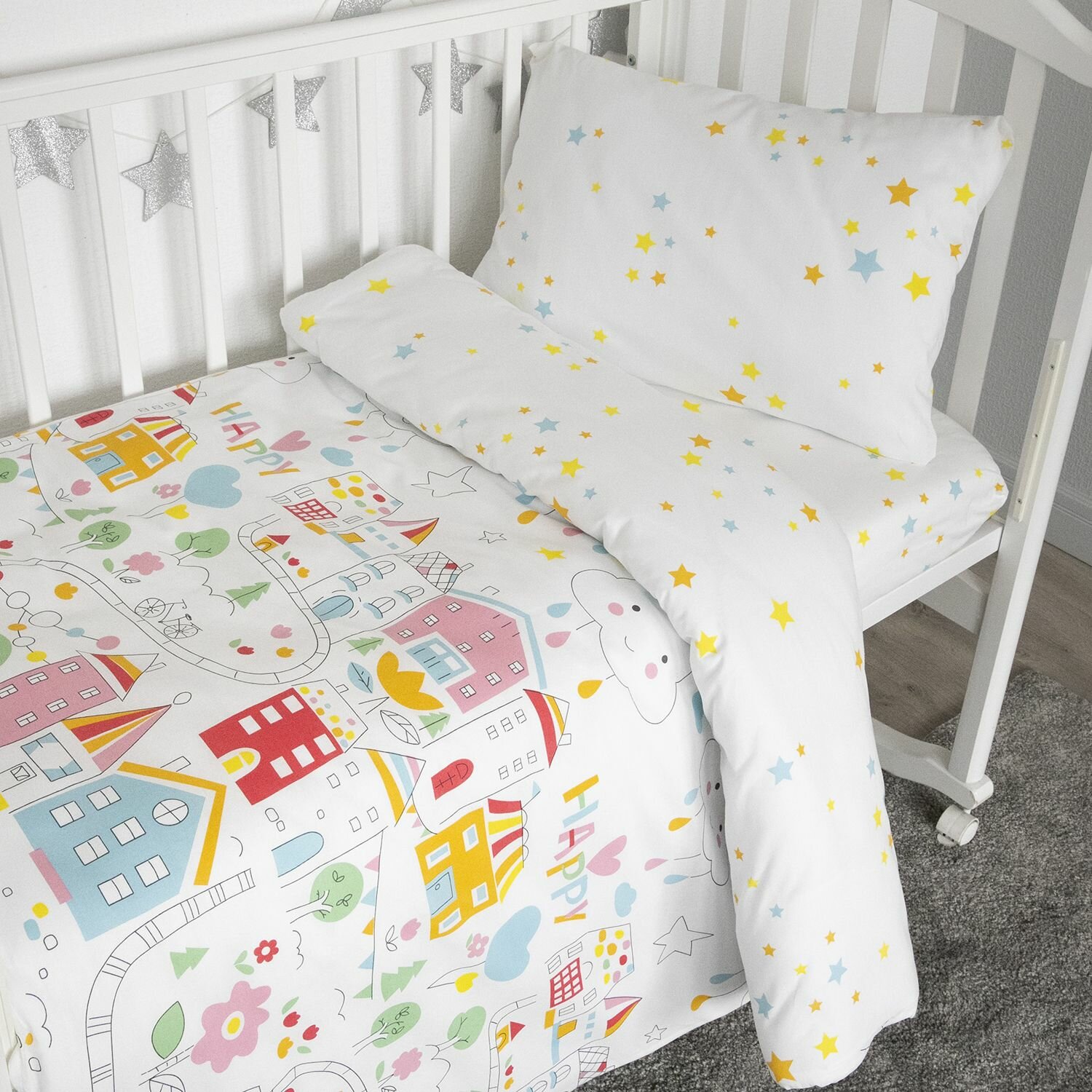 Купить Постельное белье в кроватку для новорожденного + плед "Город игр" Подарочный набор