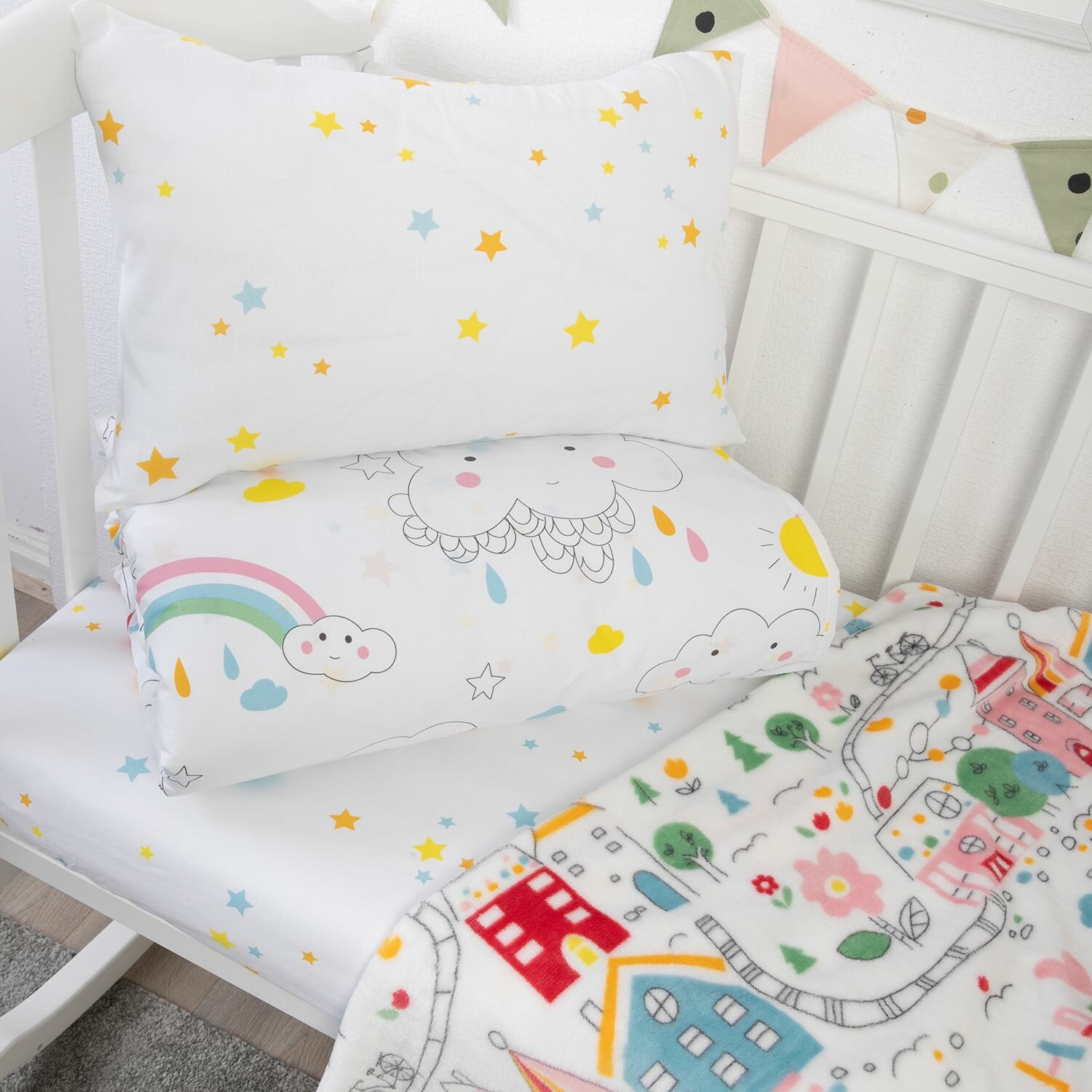 Постельное белье детское в кроватку для новорожденного поплин хлопок 100%. Облака, звезды и радуга