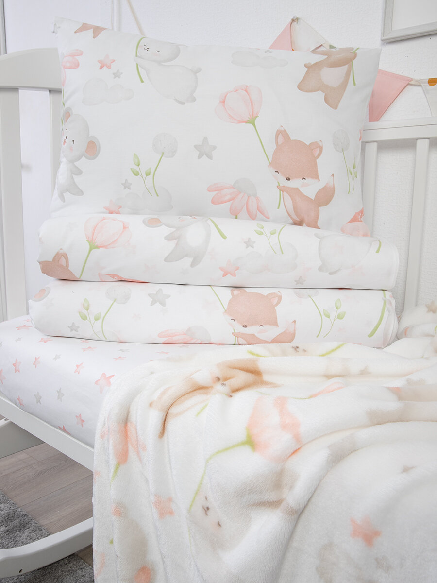 Купить Детское постельное белье + плед для новорожденного, Лесные зверьки