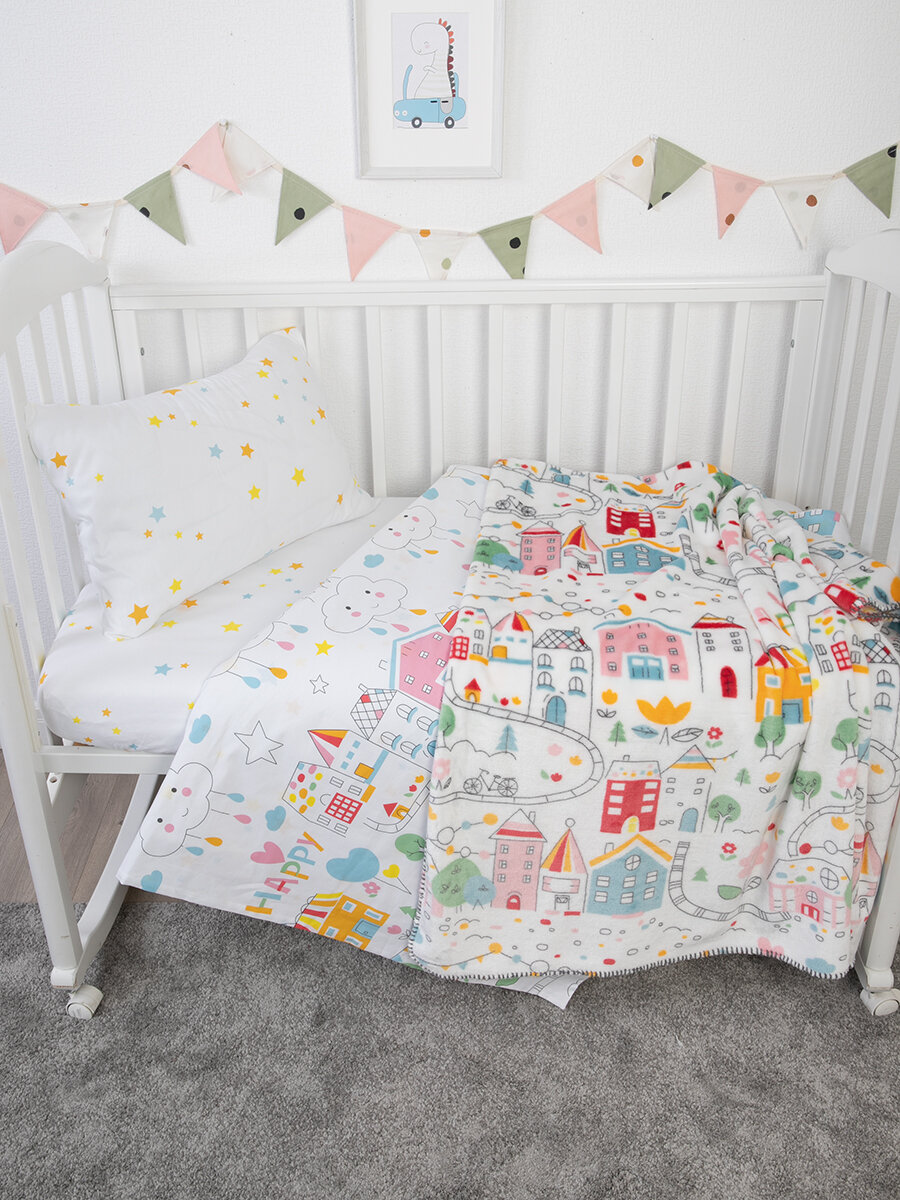Купить Детское постельное белье + плед для новорожденного, Город игр