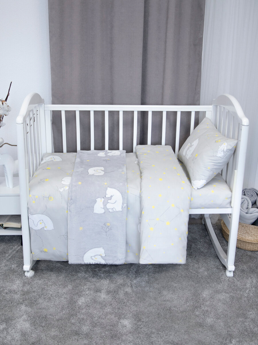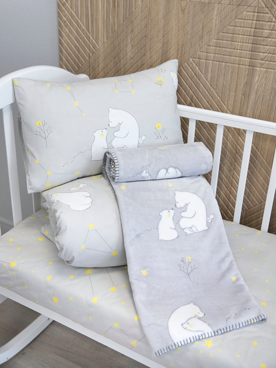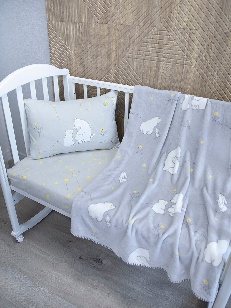 Детское постельное белье + плед для новорожденного, Мишутка, серый интересное:
