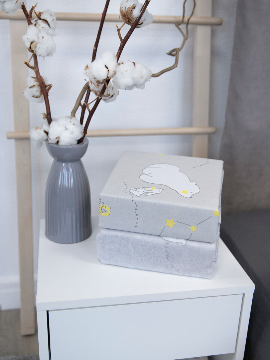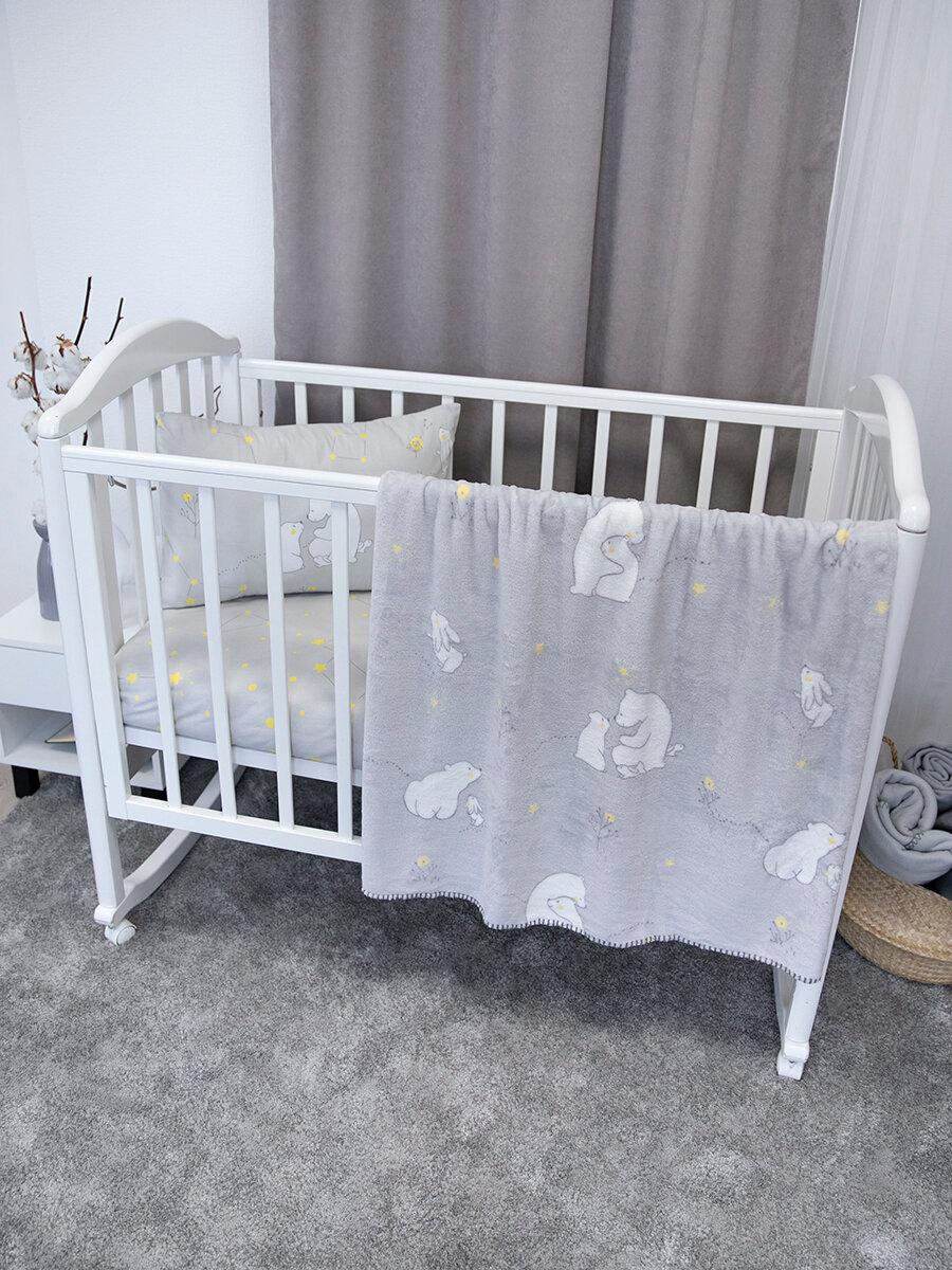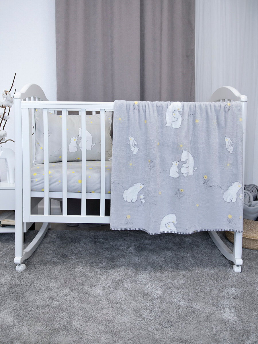 Детское постельное белье + плед для новорожденного, Мишутка, серый интересное: