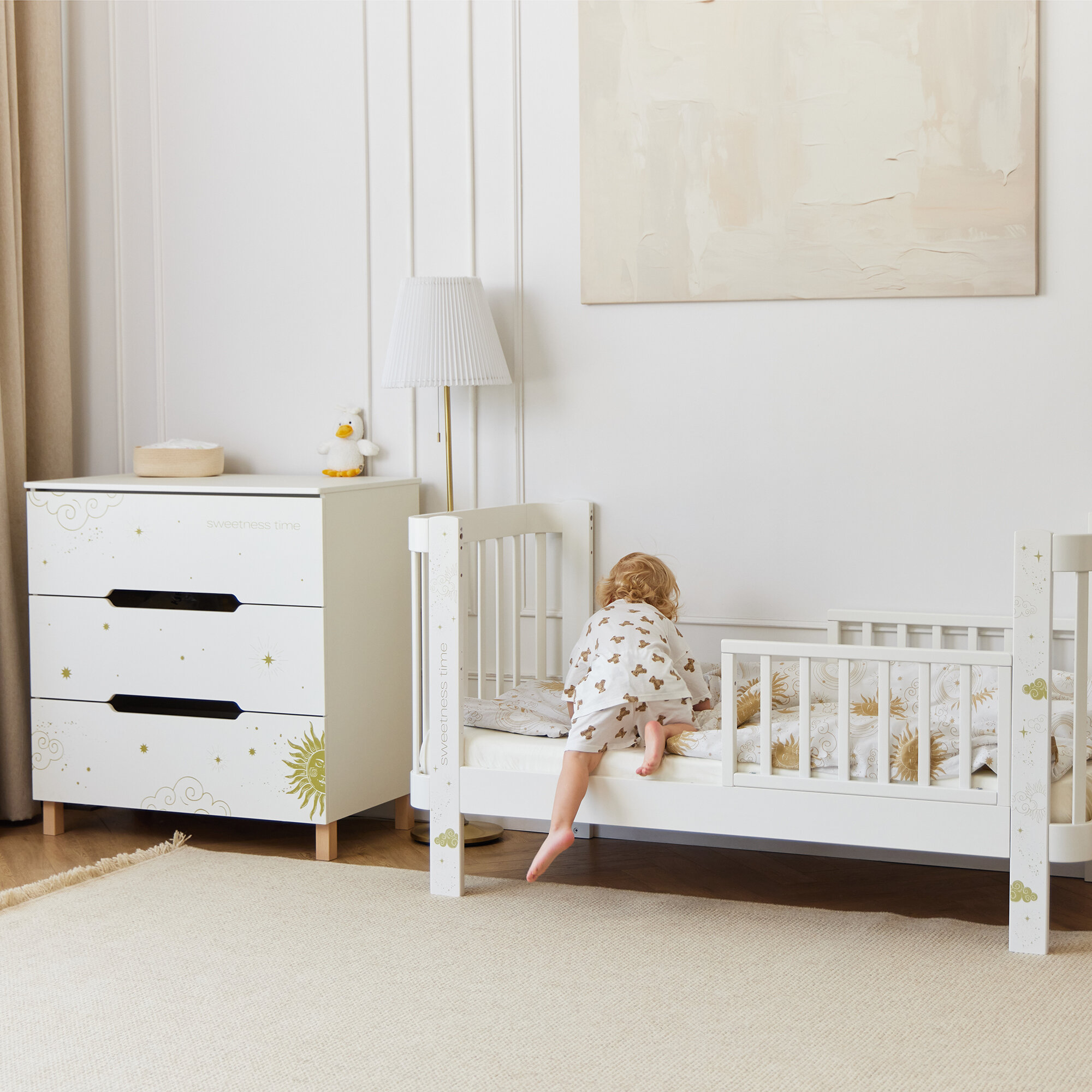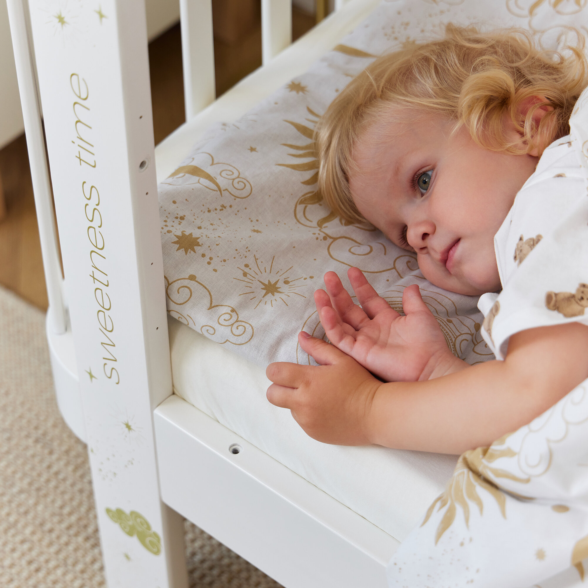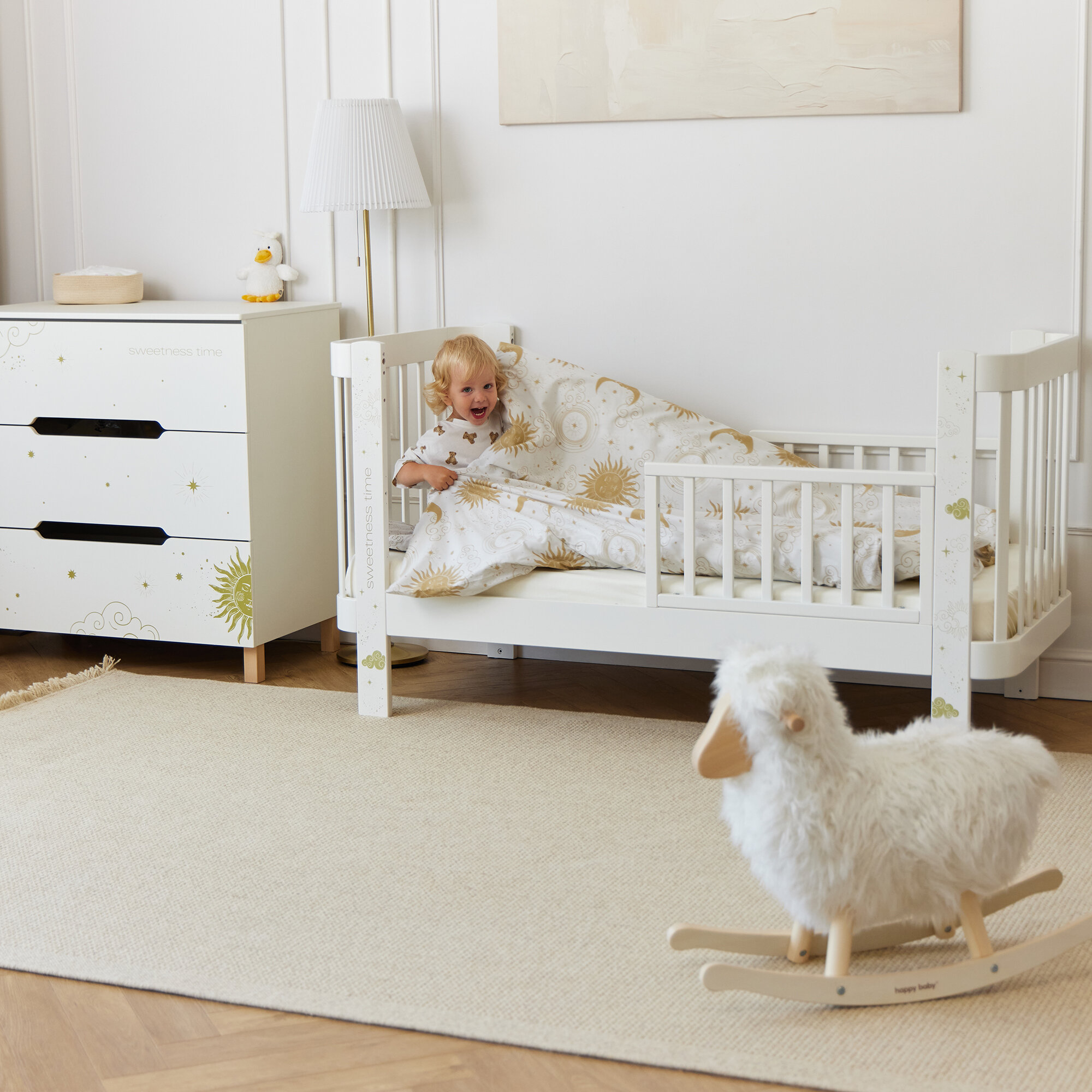 87552, Комплект постельного белья для новорожденных Happy Baby, пододеяльник 140х110 см и наволочка 60х40 см, бежевый, солнце и луна