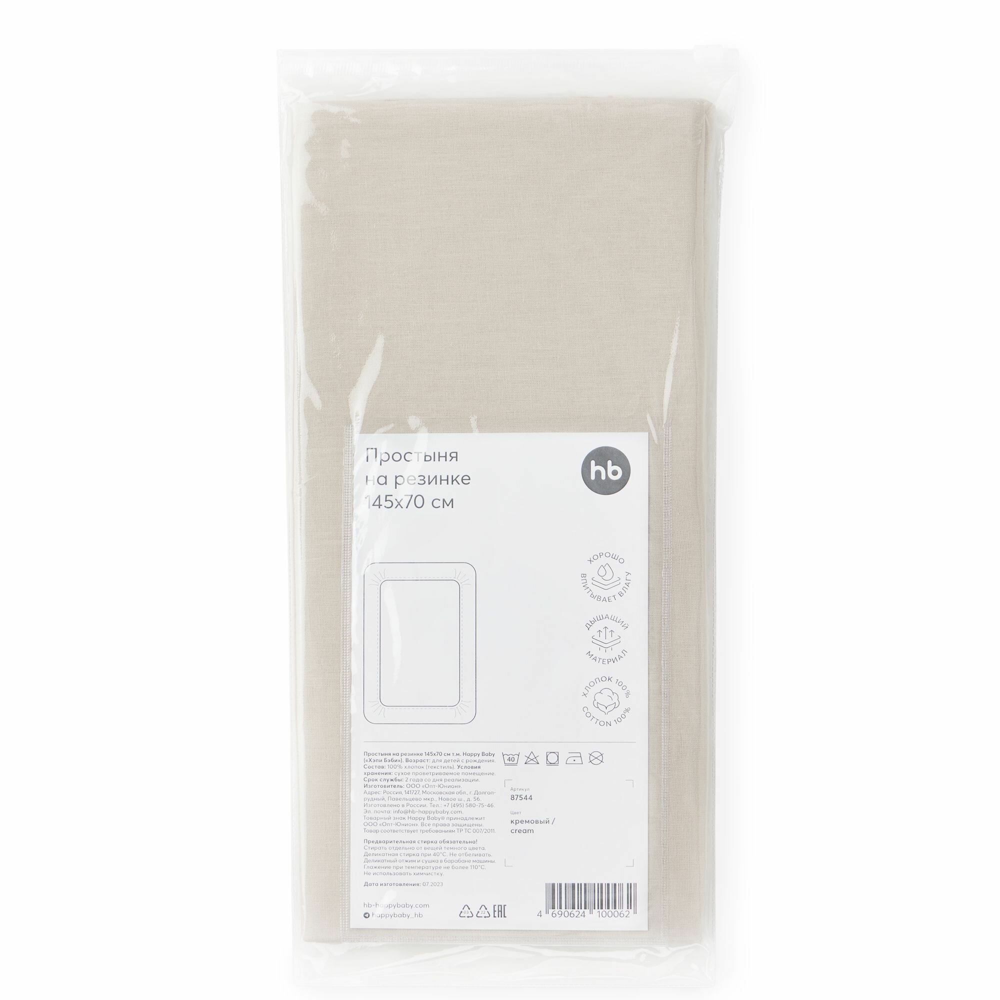 87544, Простыня на резинке Happy Baby, постельное белье детское, простынь на резинке в кроватку, размер 145х70 см, кремовый интересное: