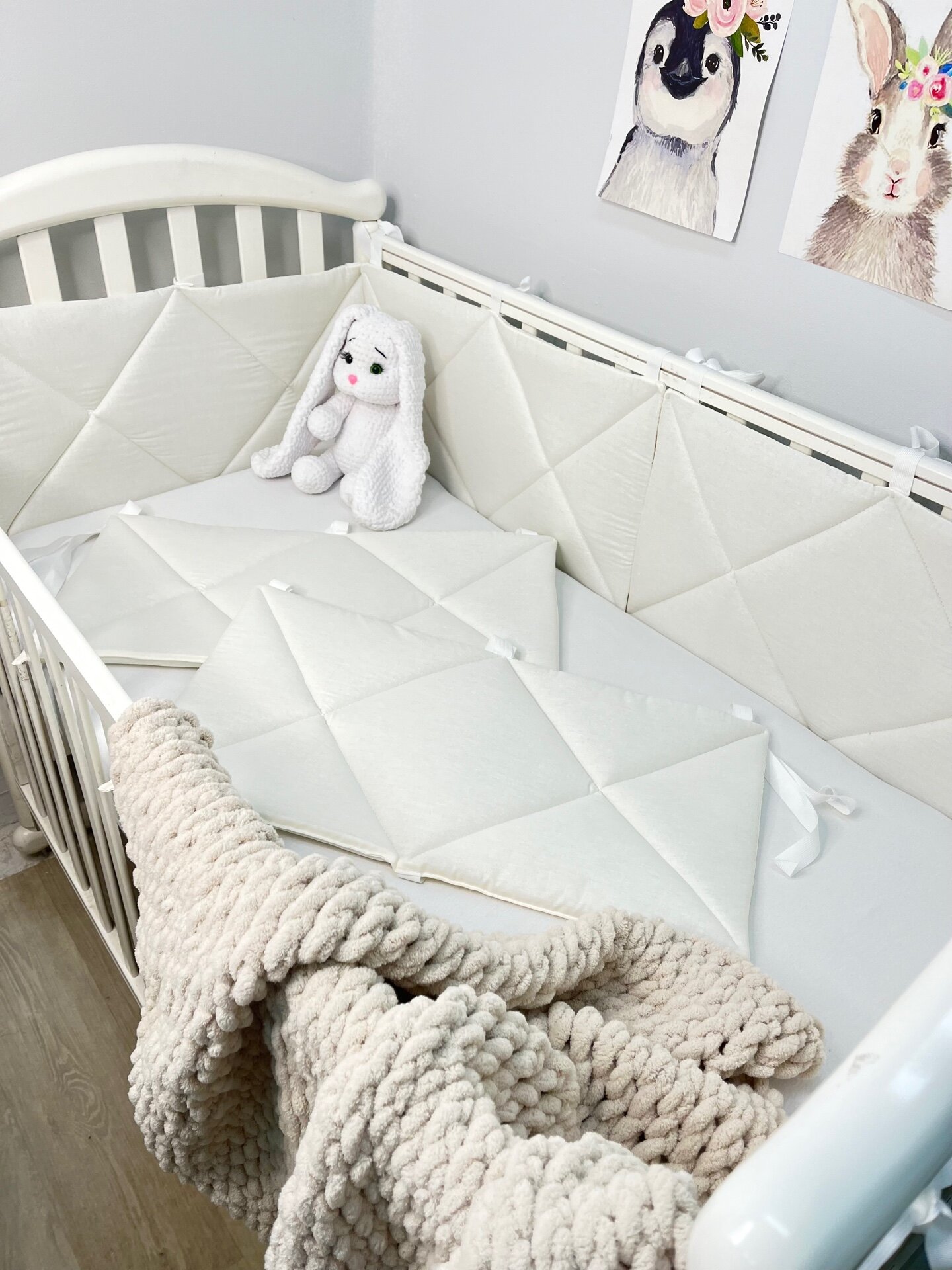 Бортики стеганные, комплект бортиков в кроватку, защитный бампер