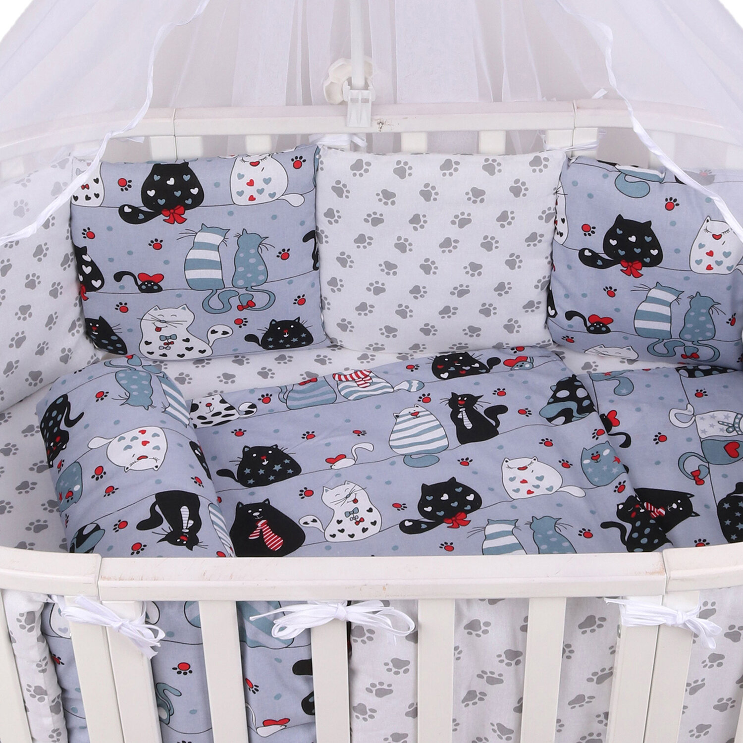 Комплект в кроватку 15 предметов (3+12 подушек-бортиков) AmaroBaby котики (бязь, серый) интересное: