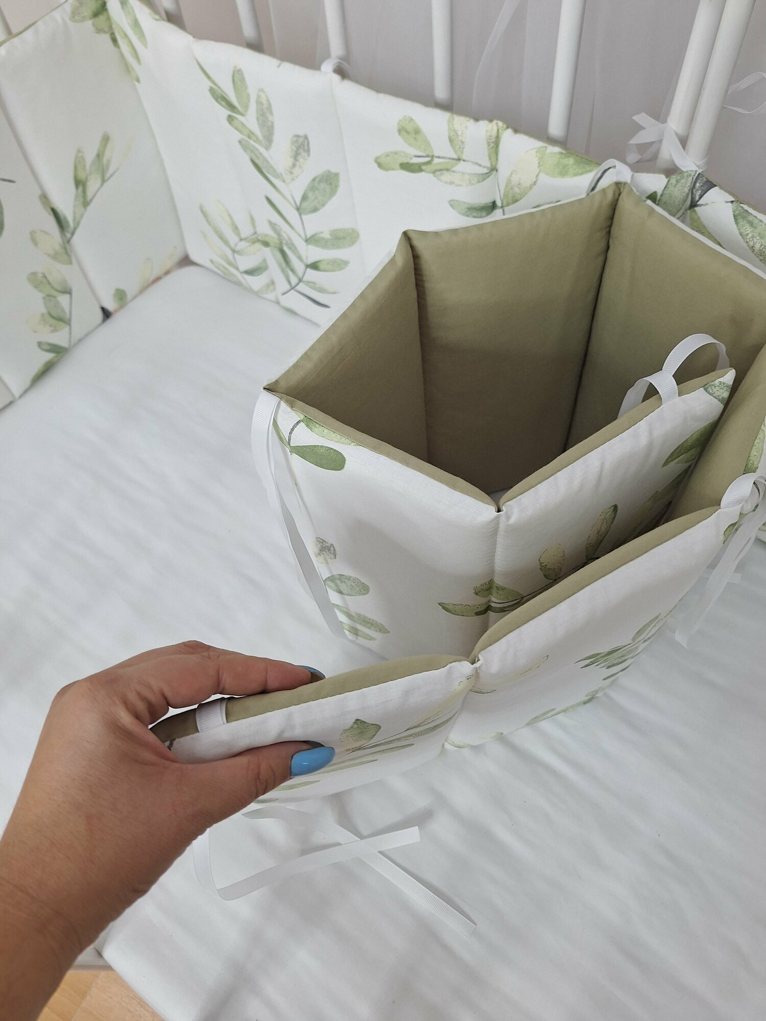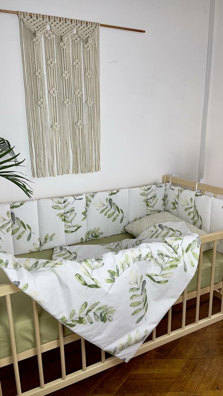 Купить Комплект бортиков в детскую кроватку, тонкие стеганные веточки оливы