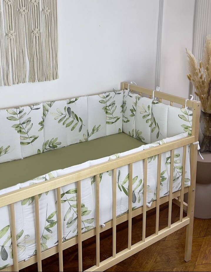 СохранитьКомплект бортиков в детскую кроватку, тонкие стеганные веточки оливы интересное: