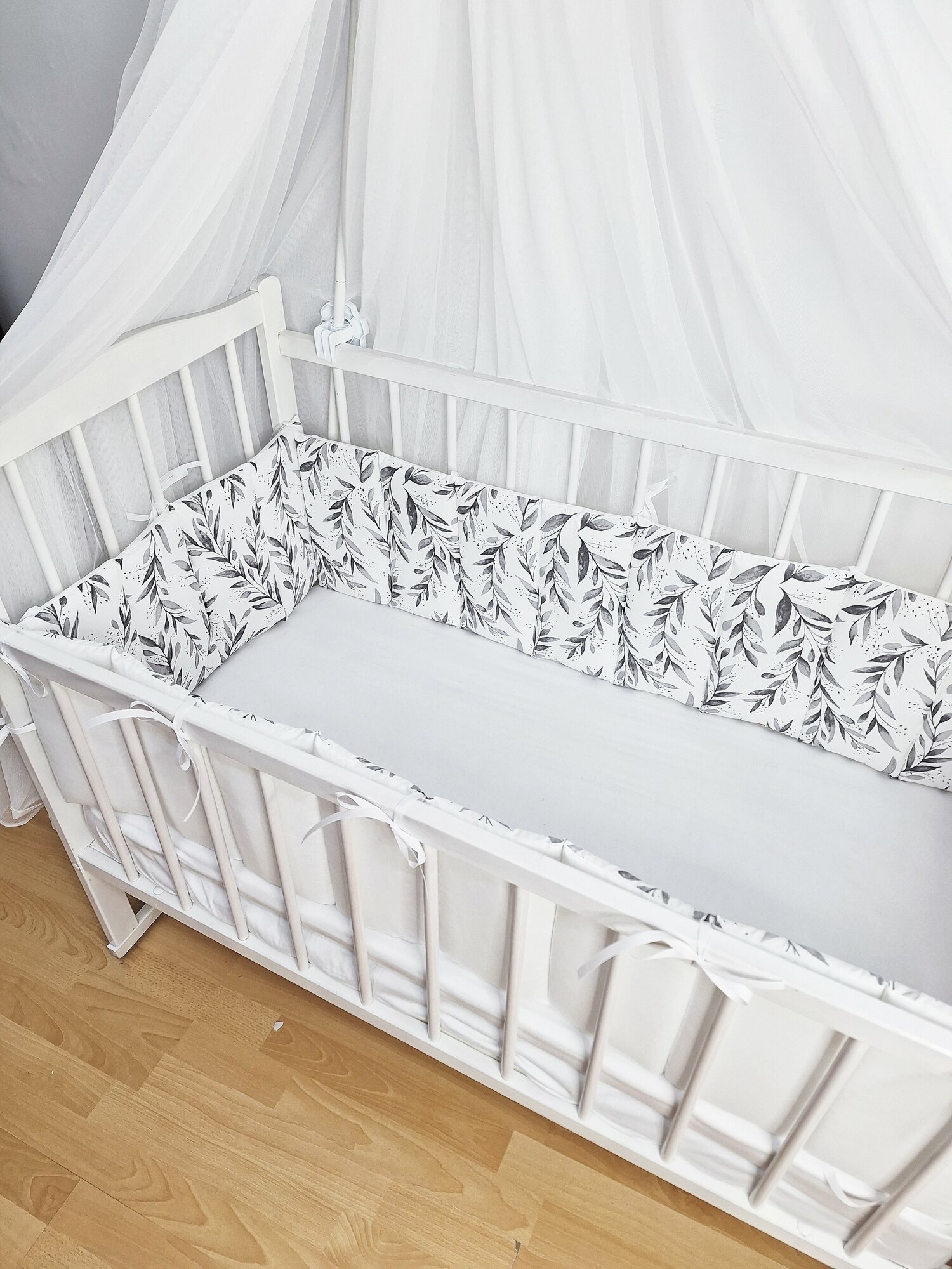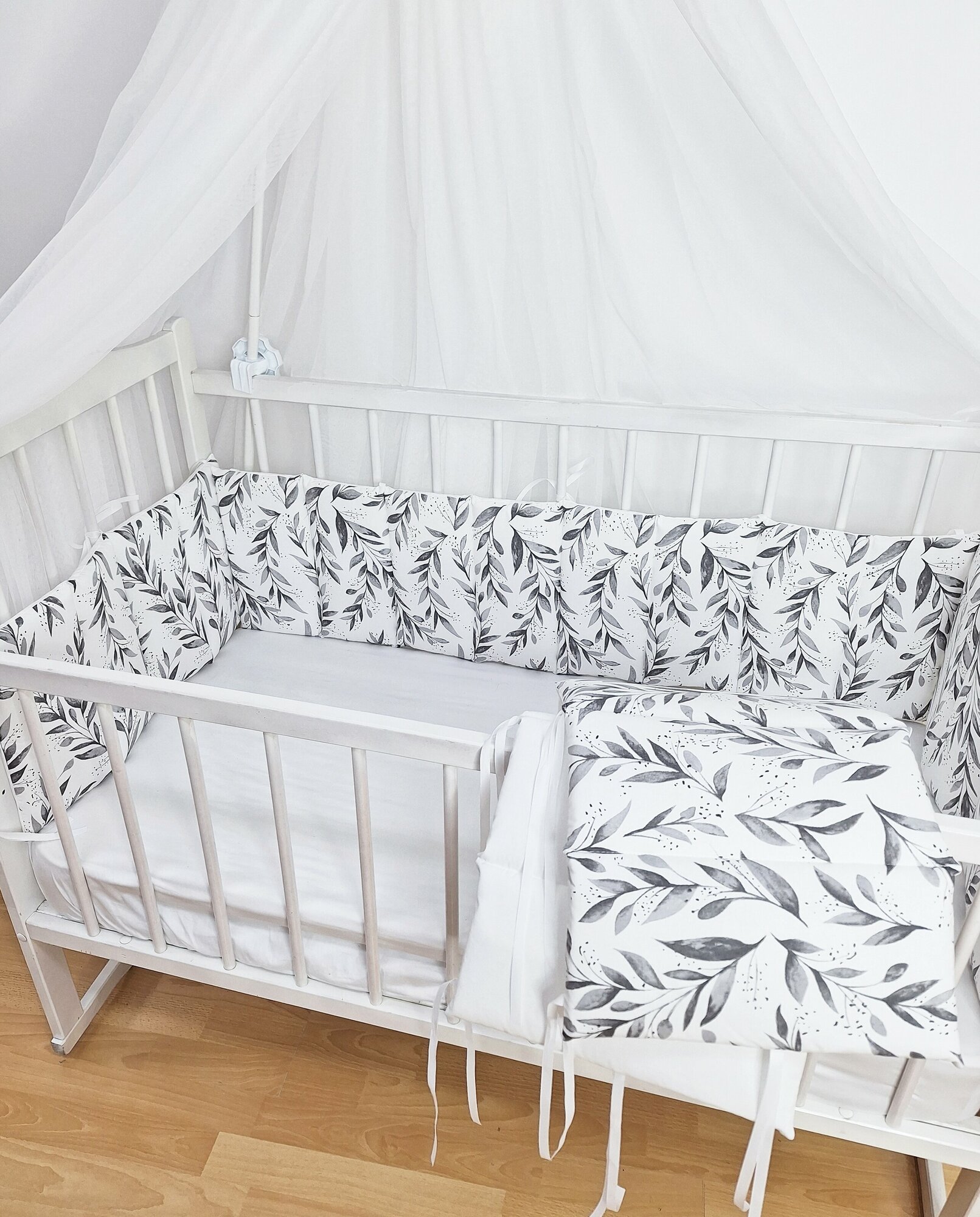 Комплект бортиков в детскую кроватку, тонкие стеганные веточки оливы