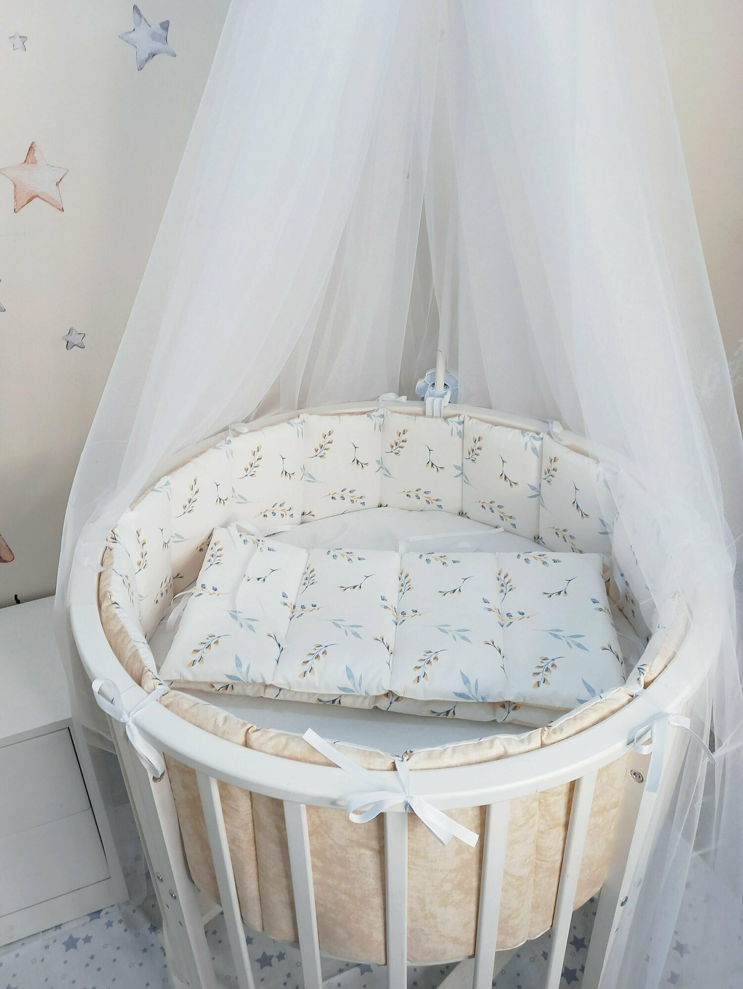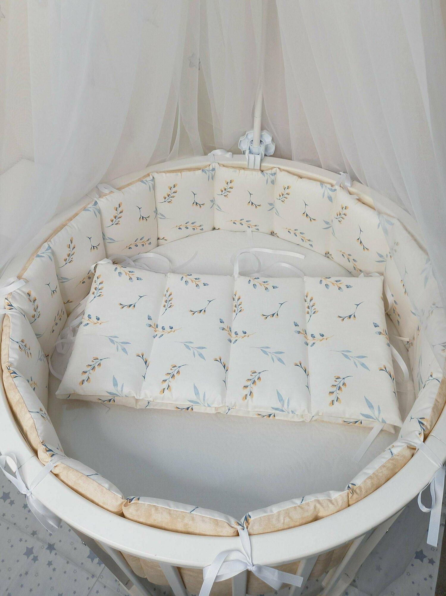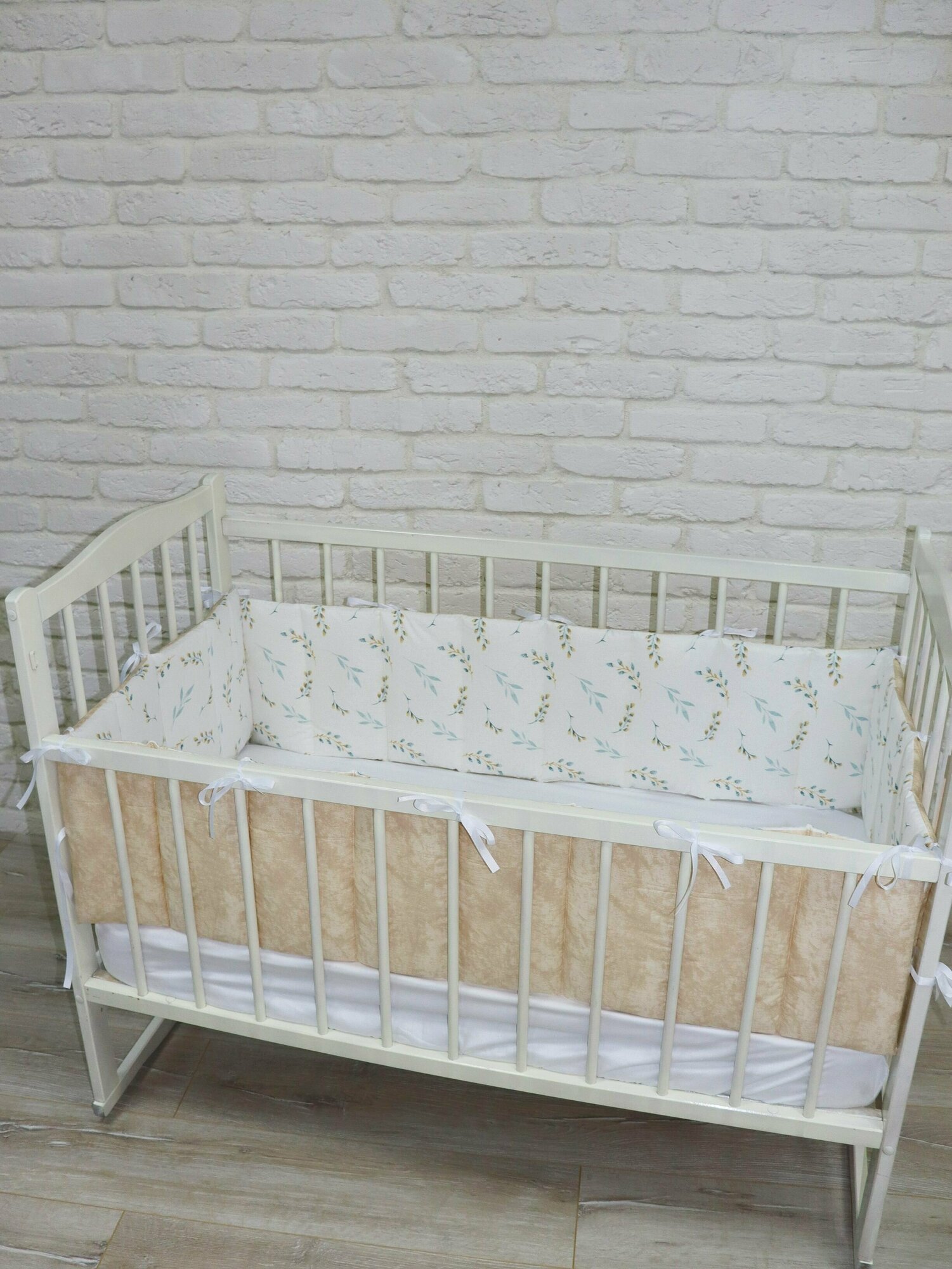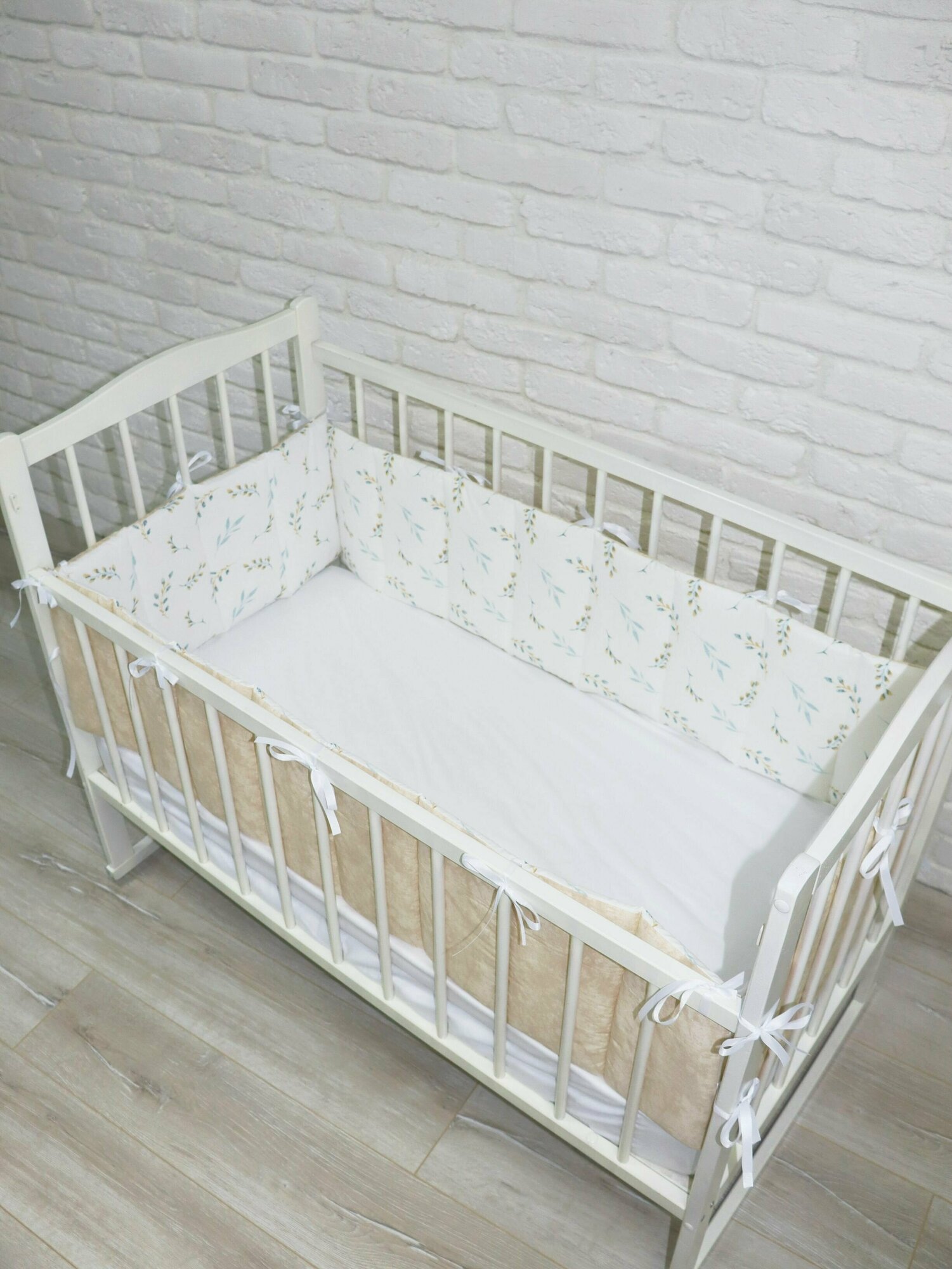 СохранитьКомплект стеганных бортиков в детскую кроватку, тонкие плоские бортики для защиты в кроватке веточки бежевые интересное:
