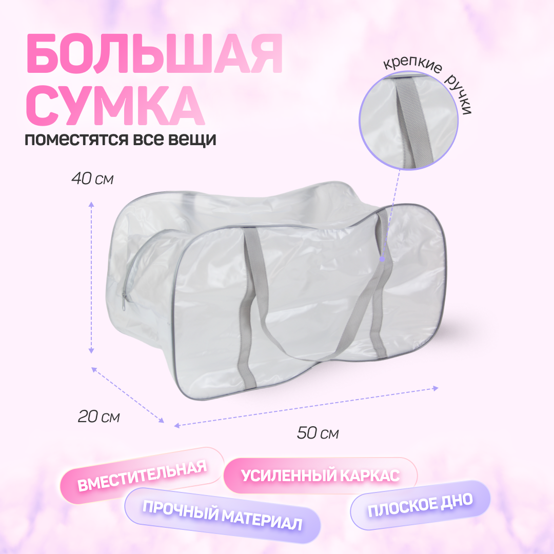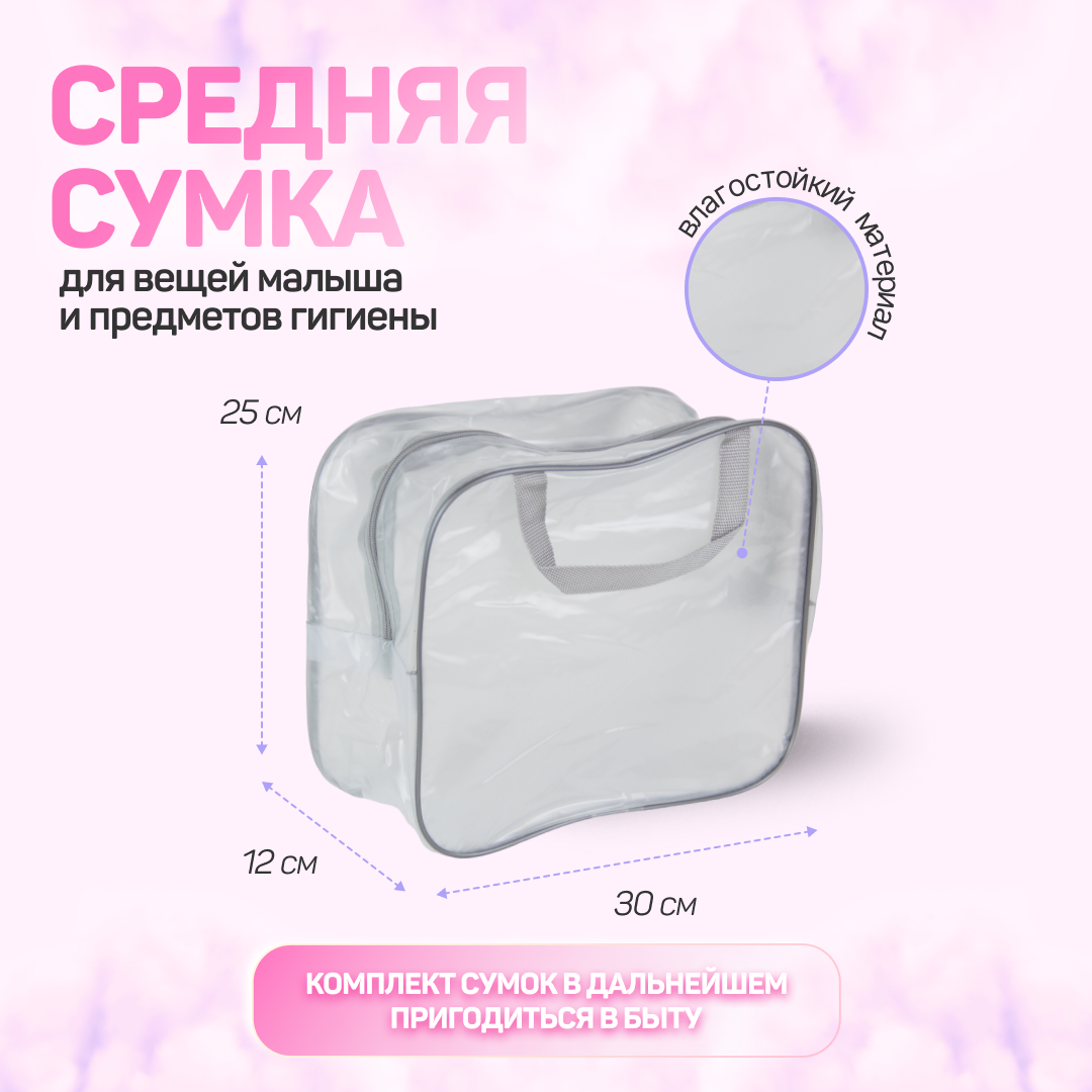 Сумка в роддом готовая для мамы и малыша с наполнением, 35 предметов, 3 сумки, комплектация "Комфорт", прозрачная