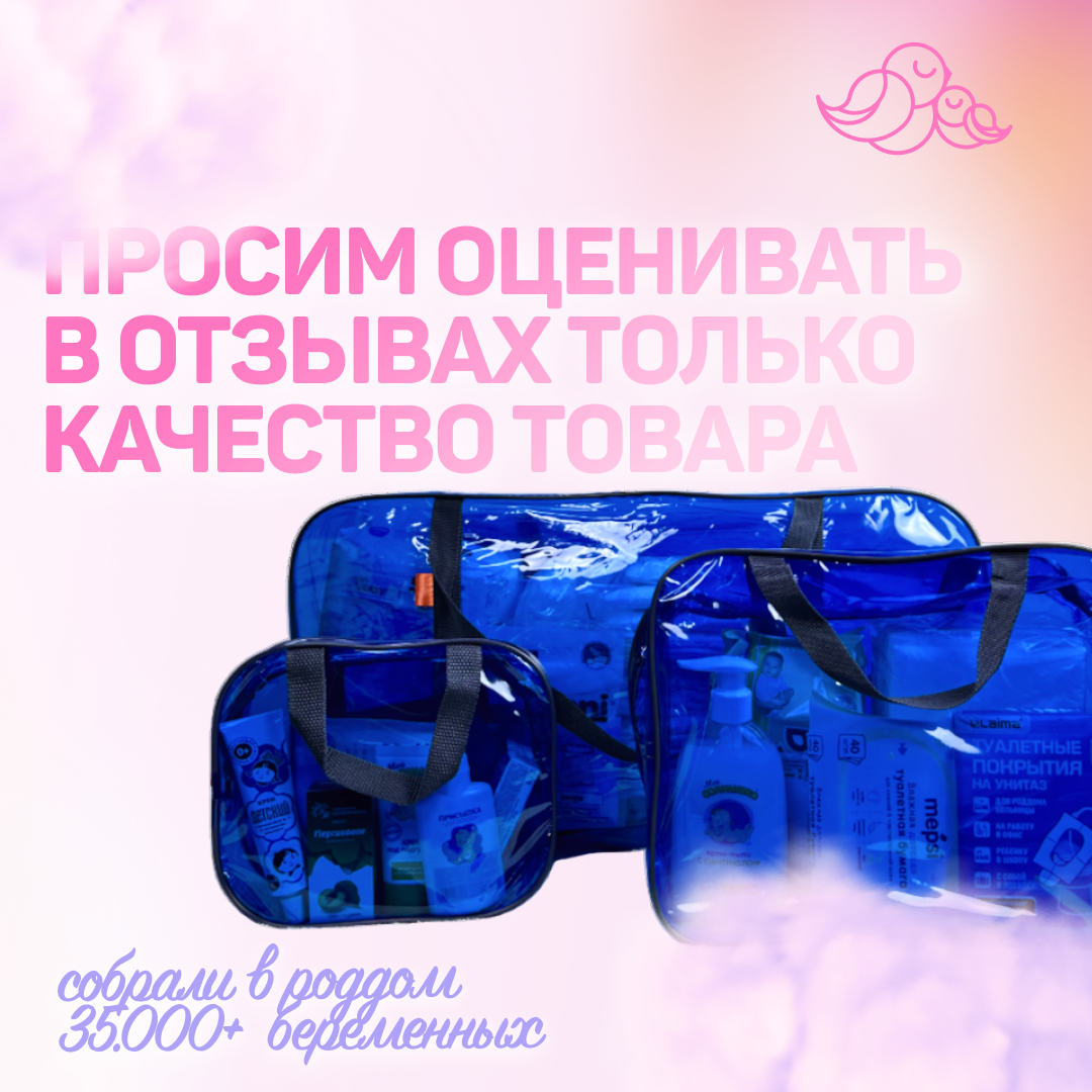 Ниже Вы можете прочитать отзывы на Сумка в роддом готовая для мамы и малыша с наполнением, 35 предметов, 3 сумки, комплектация "Комфорт", синяя, ознакомится с подробными характеристиками, посмотреть интересные обзоры и фотографии на Сумка в роддом готовая для мамы и малыша с наполнением, 35 предметов, 3 сумки, комплектация "Комфорт", синяя.