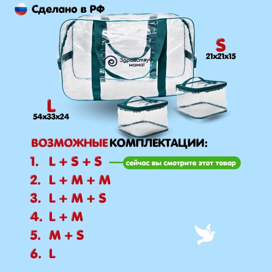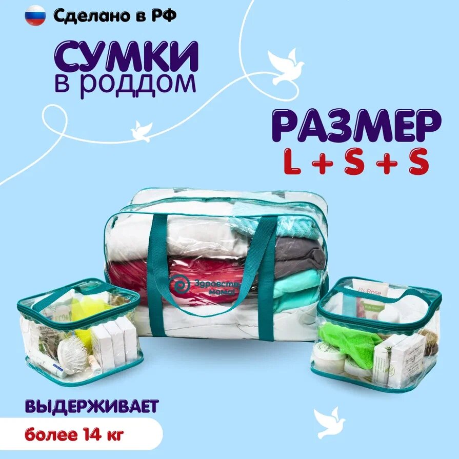 Набор сумки в роддом "Здравствуй, мама!", цвет бирюзовый, набор 3 шт. (сумка + 2 органайзера) интересное: