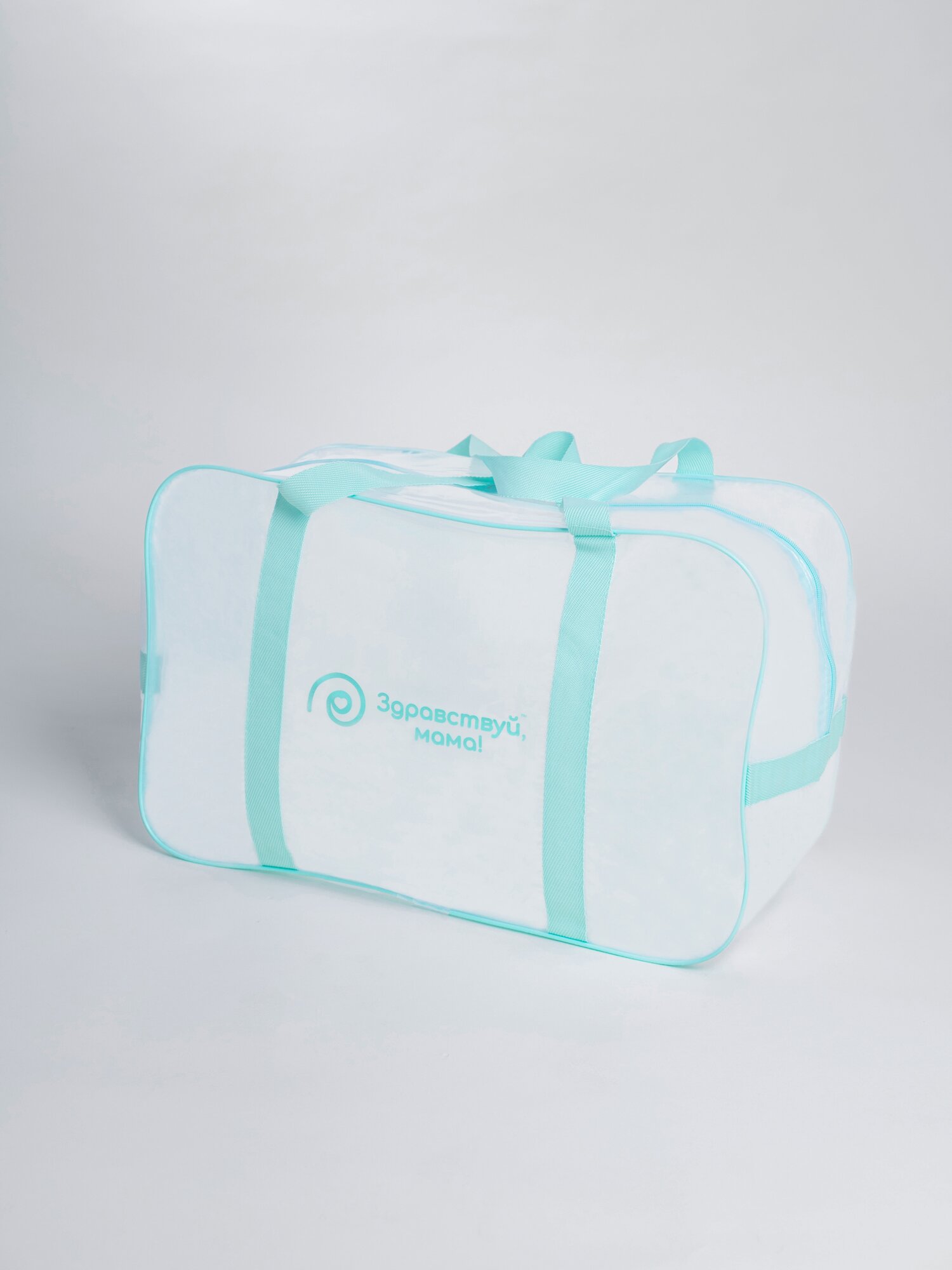 СохранитьСумка в роддом прозрачная готовая для мамы и малыша "здравствуй, мама!", цвет матовая-тиффани, одна большая сумка интересное: