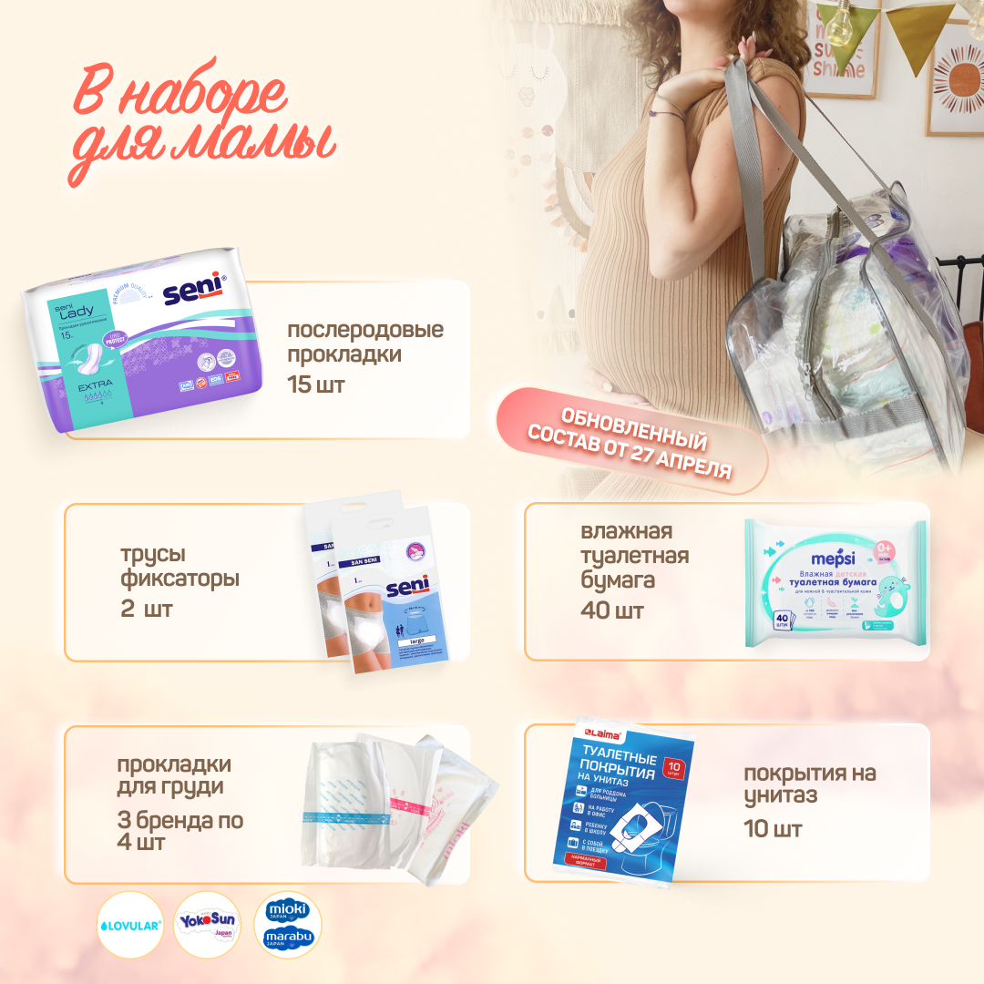 Купить Сумка в роддом готовая для мамы и малыша с наполнением, 22 предмета, 3 сумки, обновленная комплектация "Стандарт", прозрачная
