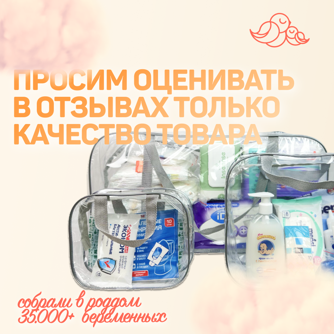 СохранитьСумка в роддом готовая для мамы и малыша с наполнением, 22 предмета, 3 сумки, обновленная комплектация "Стандарт", прозрачная интересное: