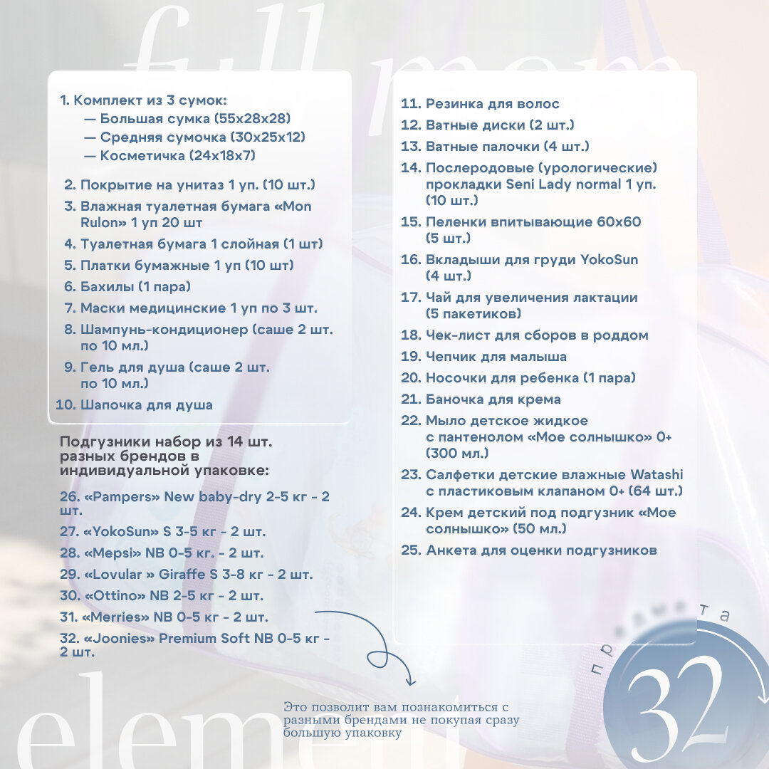 Сумка в роддом готовая для мамы и малыша с наполнением, Full mom комплектация Element, 32 предмета, 3 сумки, синяя интересное: