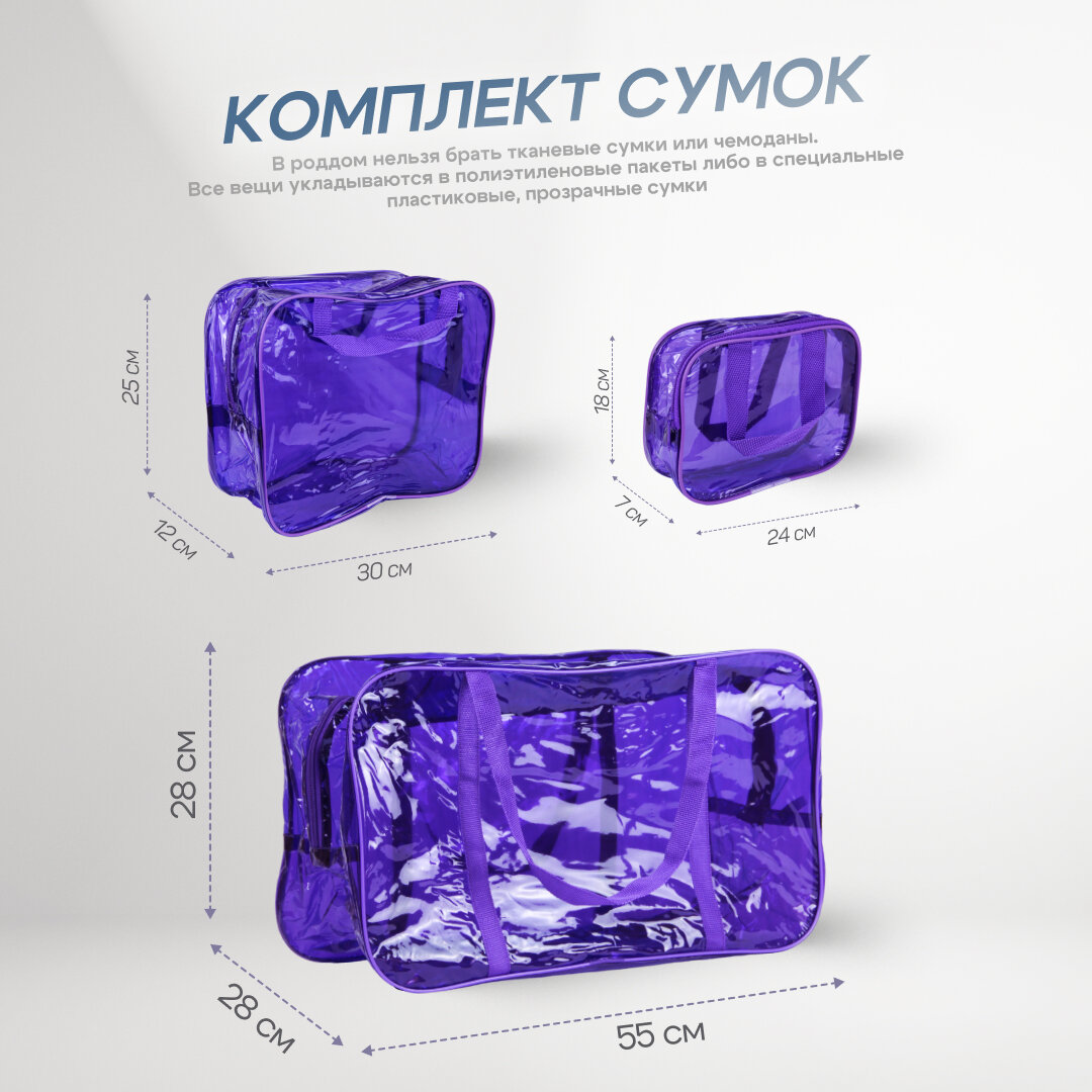 Сумка в роддом готовая для мамы и малыша с наполнением, Full mom комплектация Element, 32 предмета, 3 сумки, фиолетовая интересное: