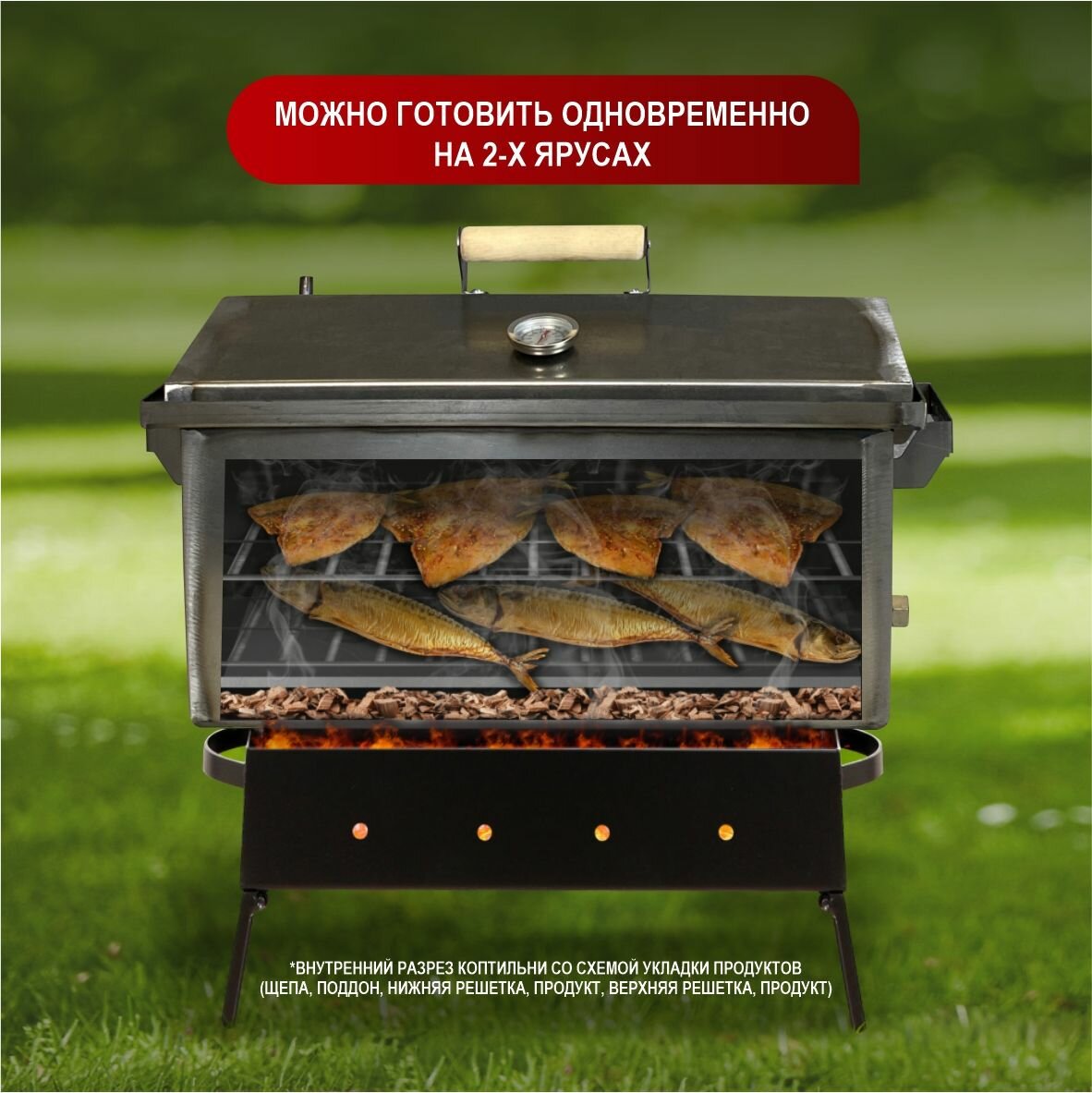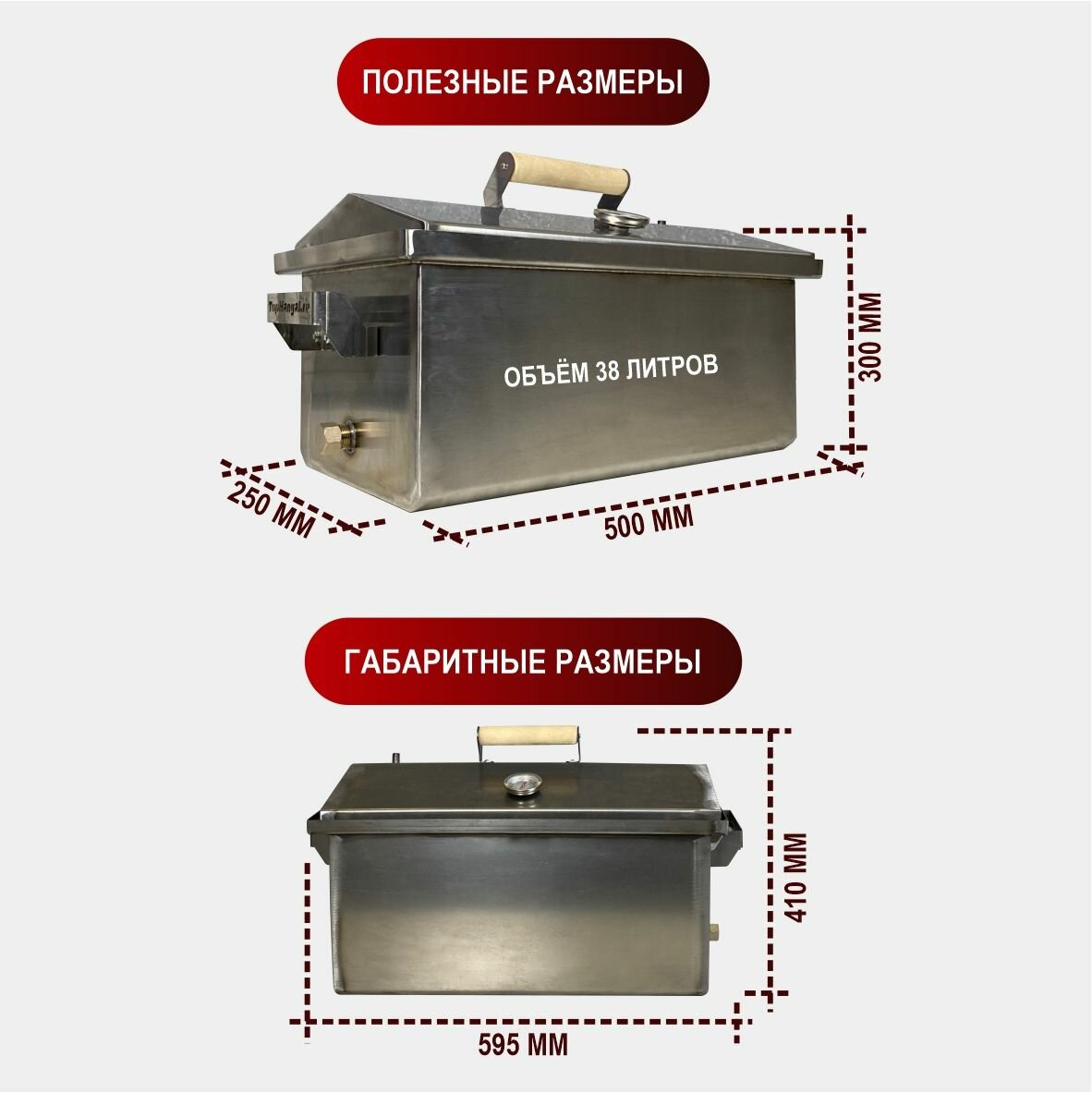 Коптильня горячего и холодного копчения с гидрозатвором с датчиком температуры 2 мм (500*250*300) некрашенная интересное: