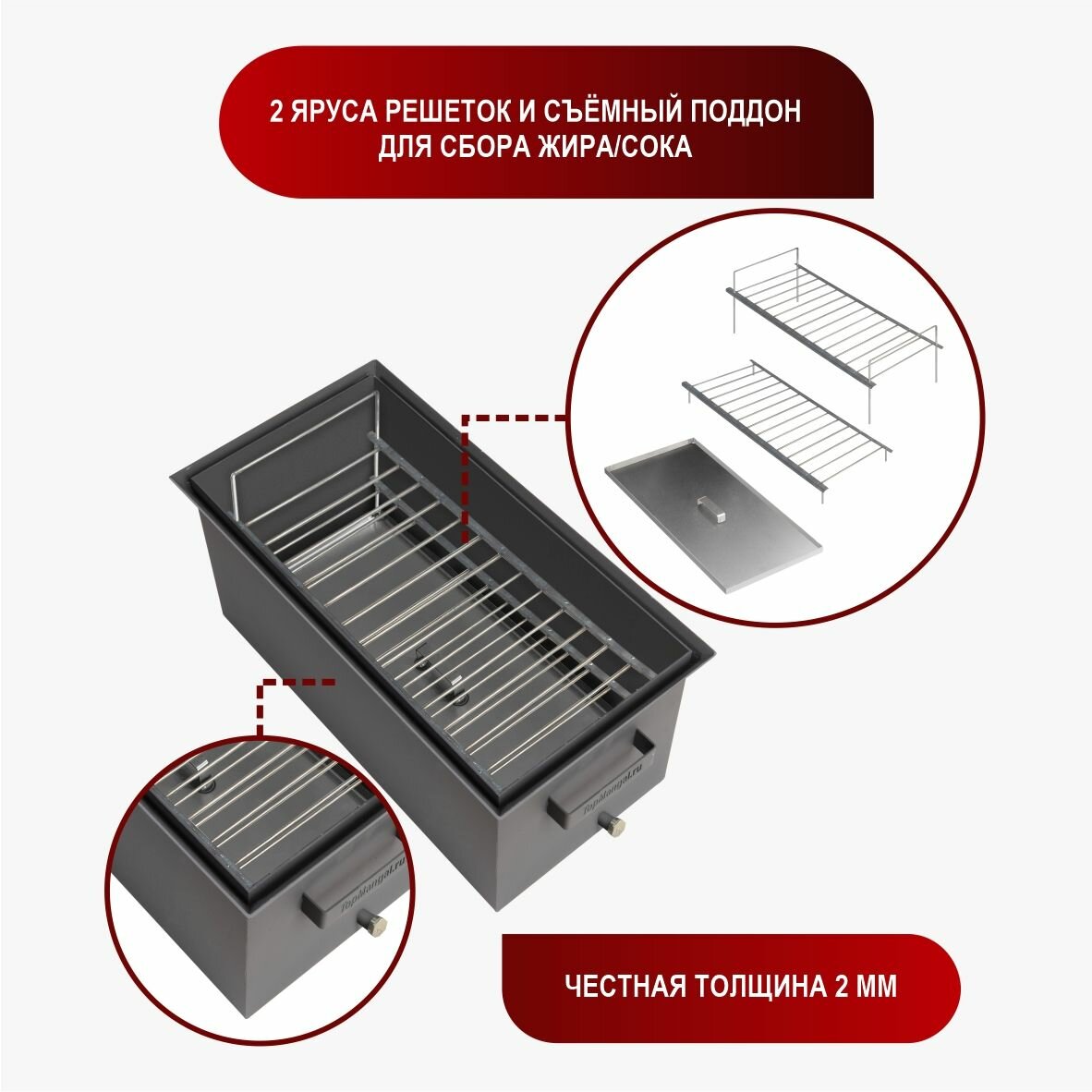 | Особенности | крышка / поддон для сбора жира / решетка |