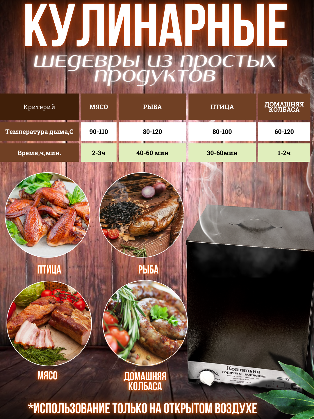 | Тип топлива | копчение на щепе |