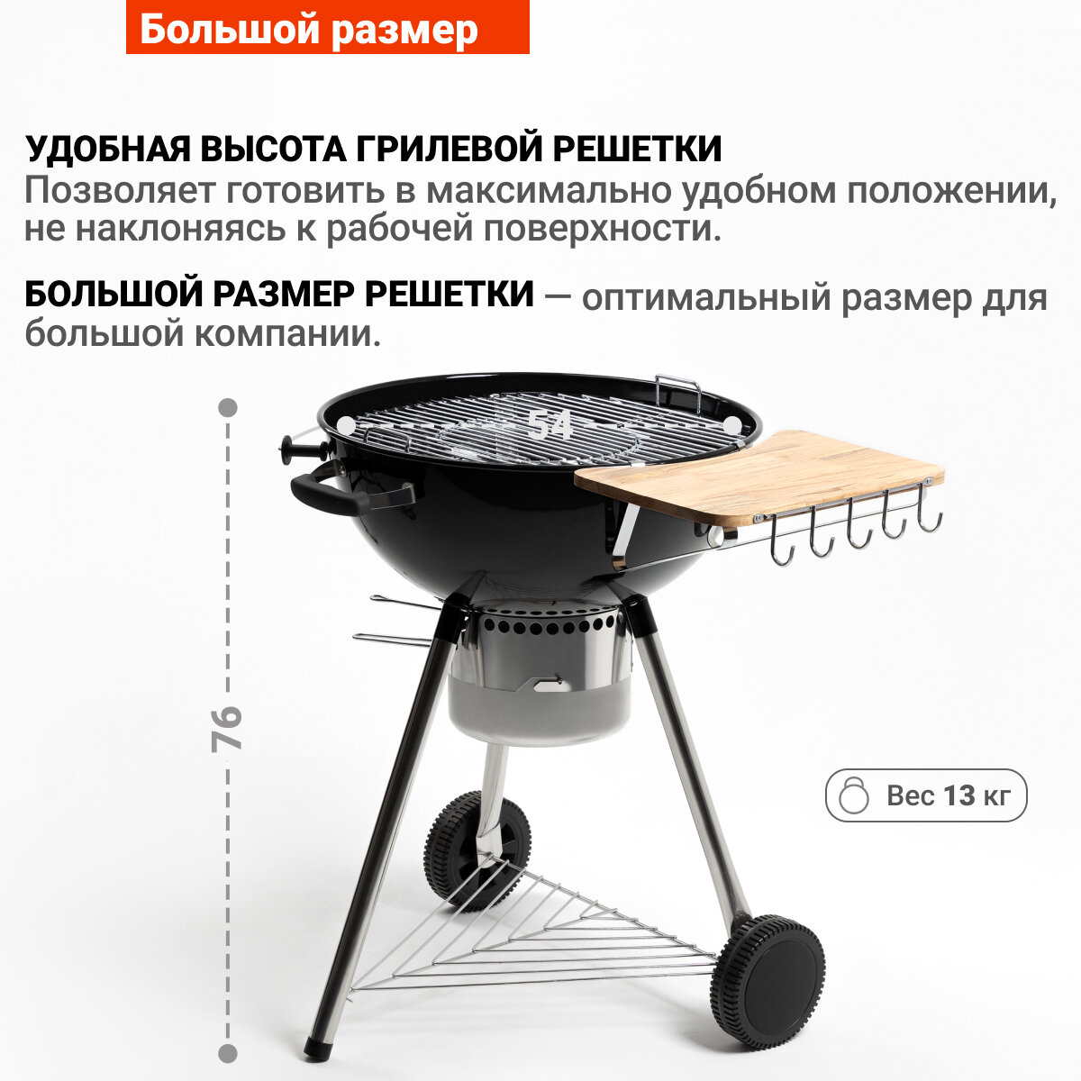 | Особенности | дровница / колёса / крышка / переносной / разборный / решетка / столик / термометр |