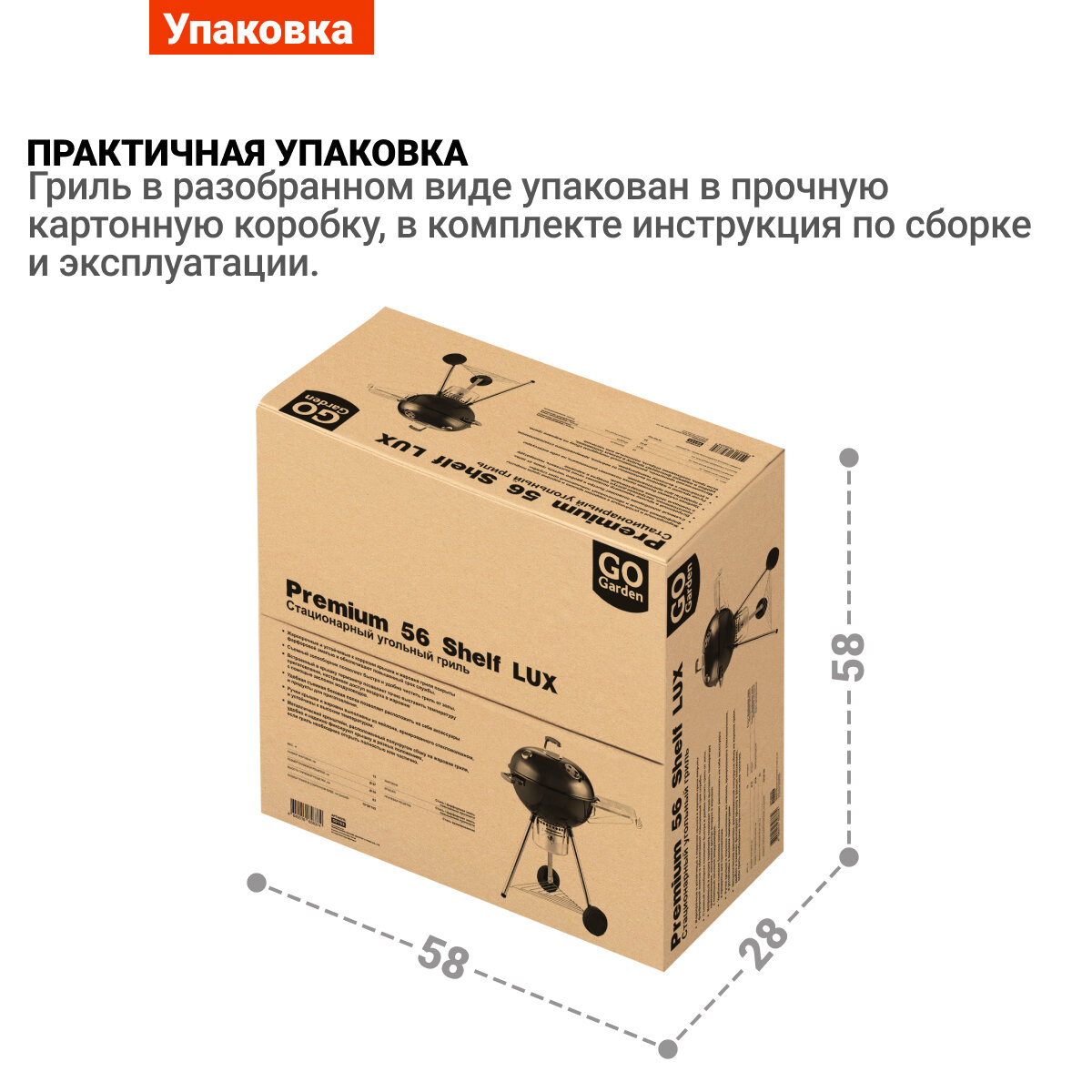 Угольный гриль барбекю GoGarden Premium 56 LUX Shelf с термометром и модульной решеткой интересное:
