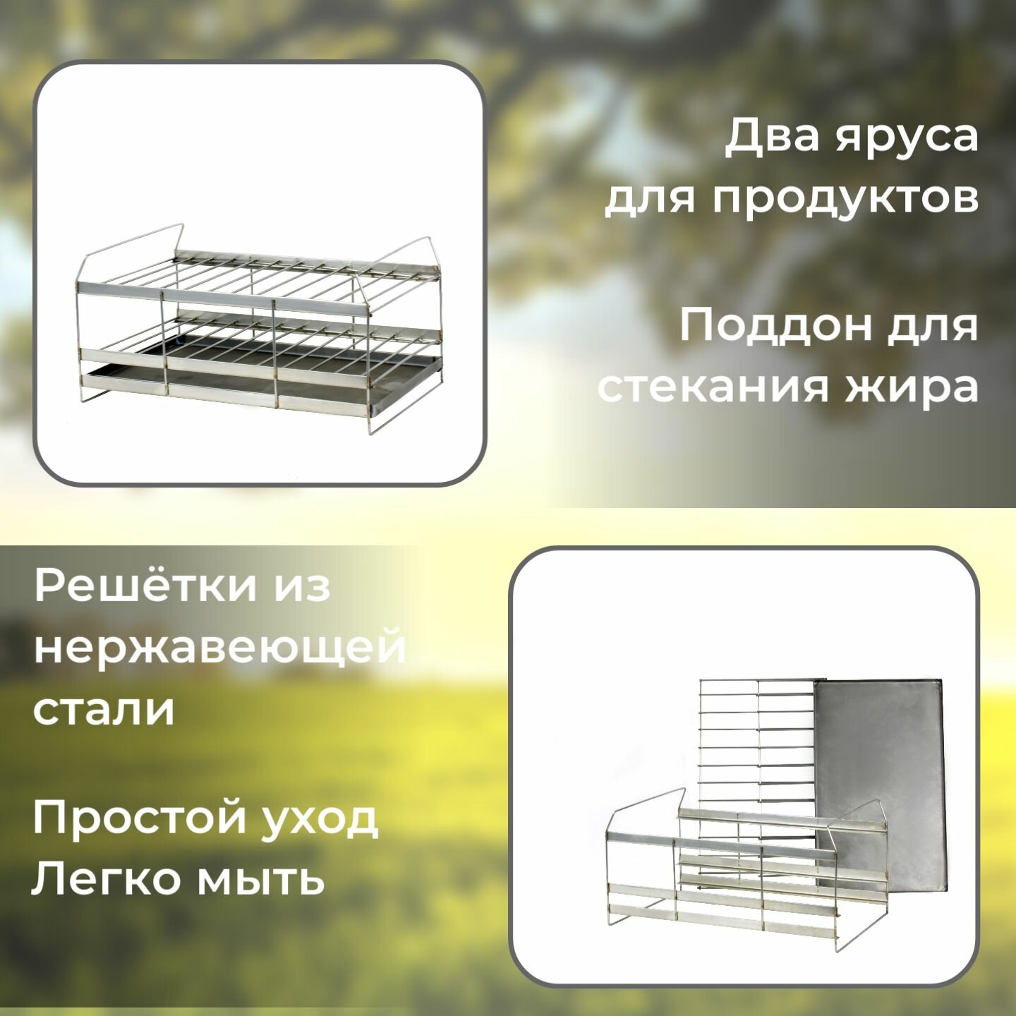 Коптильня с термометром горячего копчения, сталь 2 мм, 40х25х32 см, двухъярусная, крышка с гидрозатвором интересное: