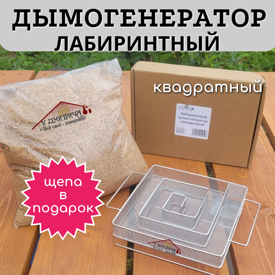 Дымогенератор лабиринтный квадратный (пассивный) для копчения + щепа в подарок интересное: