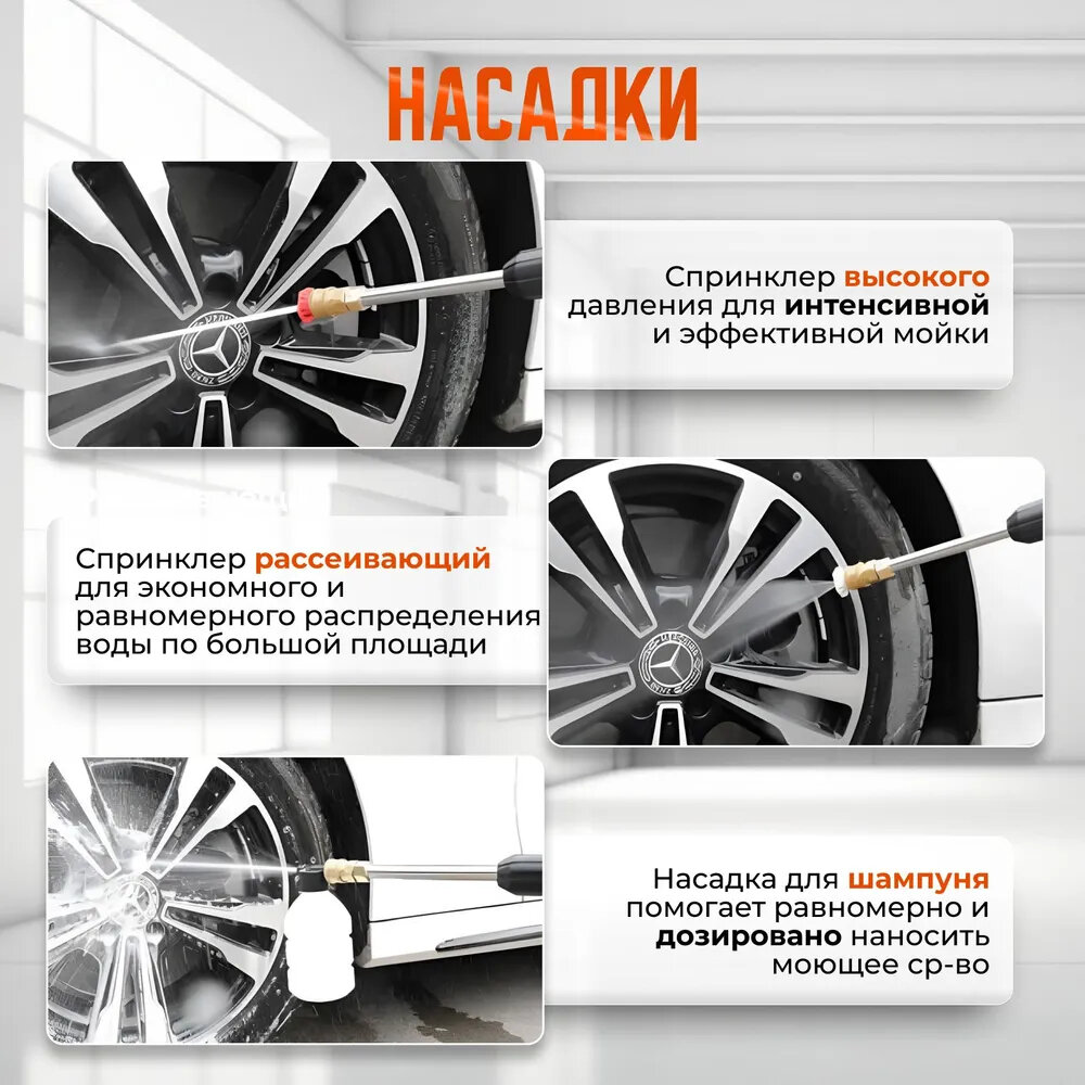 | Насадки | веерная насадка / грязевая фреза / пеногенератор |