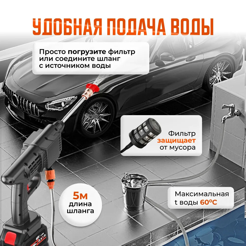 Мойка высокого давления аккумуляторная для автомобиля и дачи, в кейсе, 800W, 2хАКБ 48V интересное: