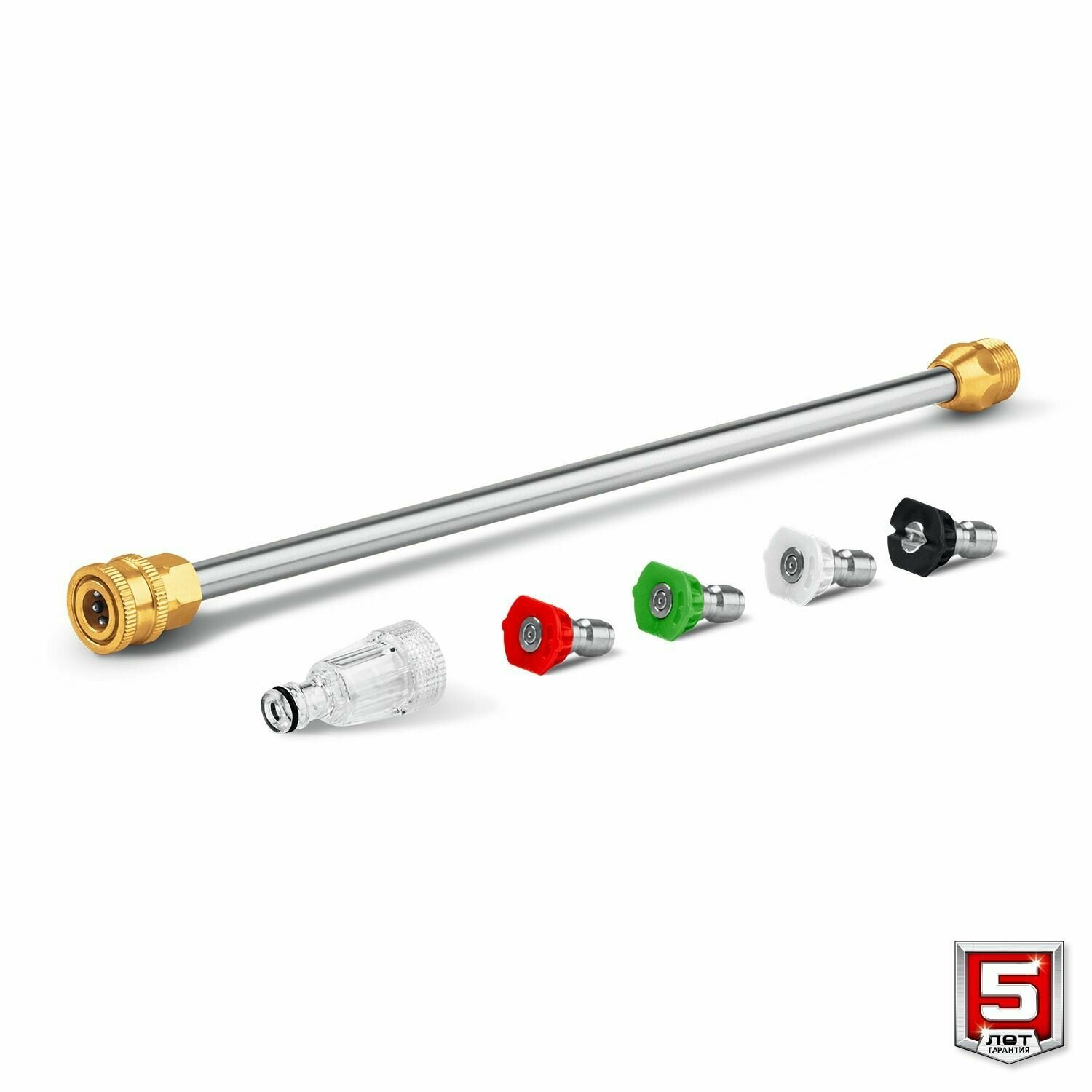 | Подробная комплектация | Мойка высокого давления - 1 шт. Шланг высокого давления - 1 шт. Пистолет - 1 шт. Распылитель - 1 шт. Насадка - 4 шт. Фильтр - 1 шт. Переходник М22/М14 - 1 шт. Игла для прочистки - 1 шт. Руководство по эксплуатации - 1 экз. |