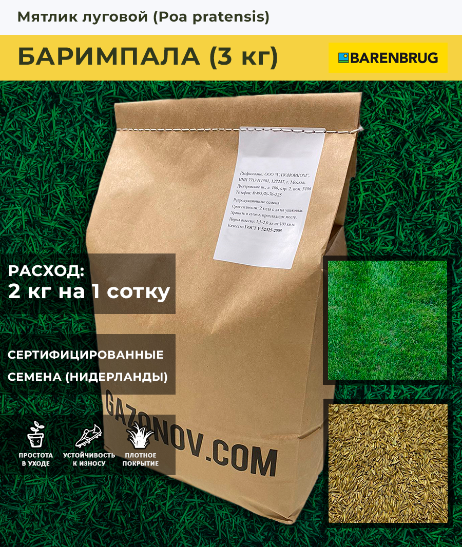 | Дополнительная информация | 100% мятлик луговой Баримпала |