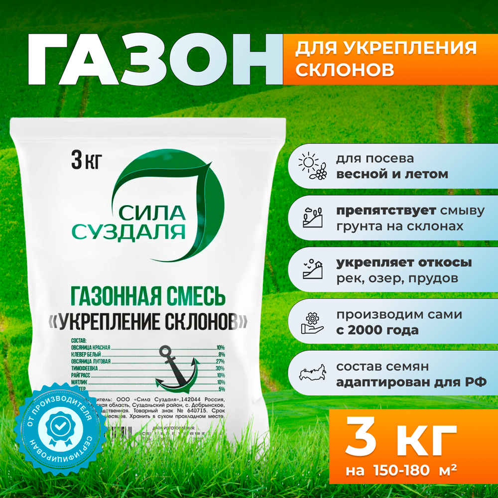 Сила Суздаля Газонная травосмесь "Для укрепления склонов", семена 3 кг 4680004061243 .