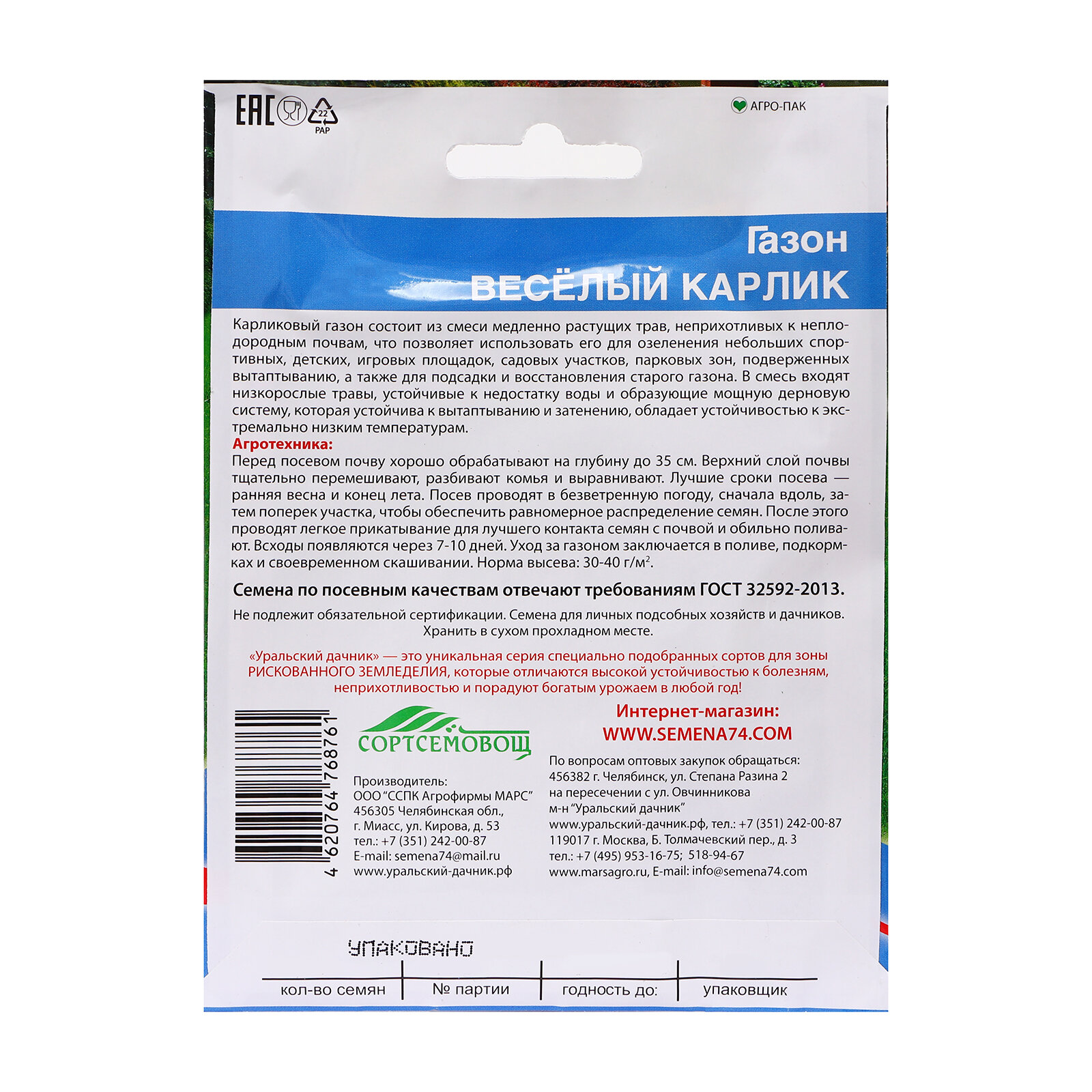Семена Газон "Веселый Карлик", 20 г интересное: