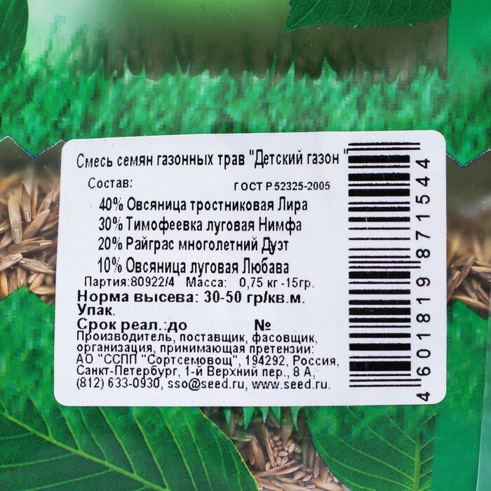 Семена газонной травы "Зеленый уголок","Детский", 0,75 кг интересное: