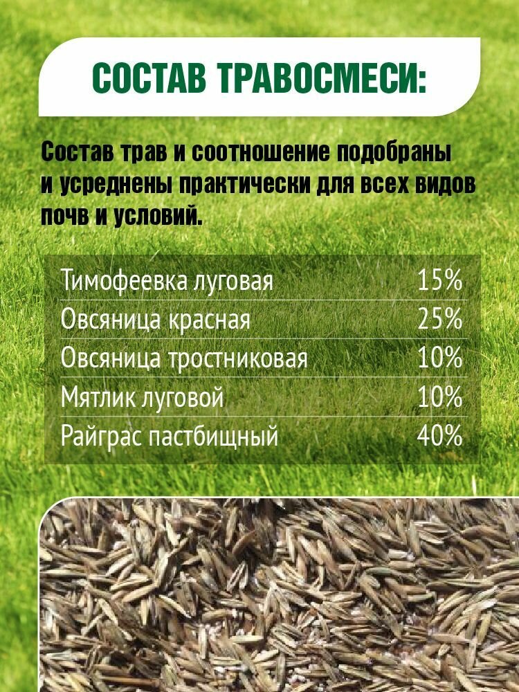 | Состав смеси | овсяница, мятлик, тимофеевка, райграс |