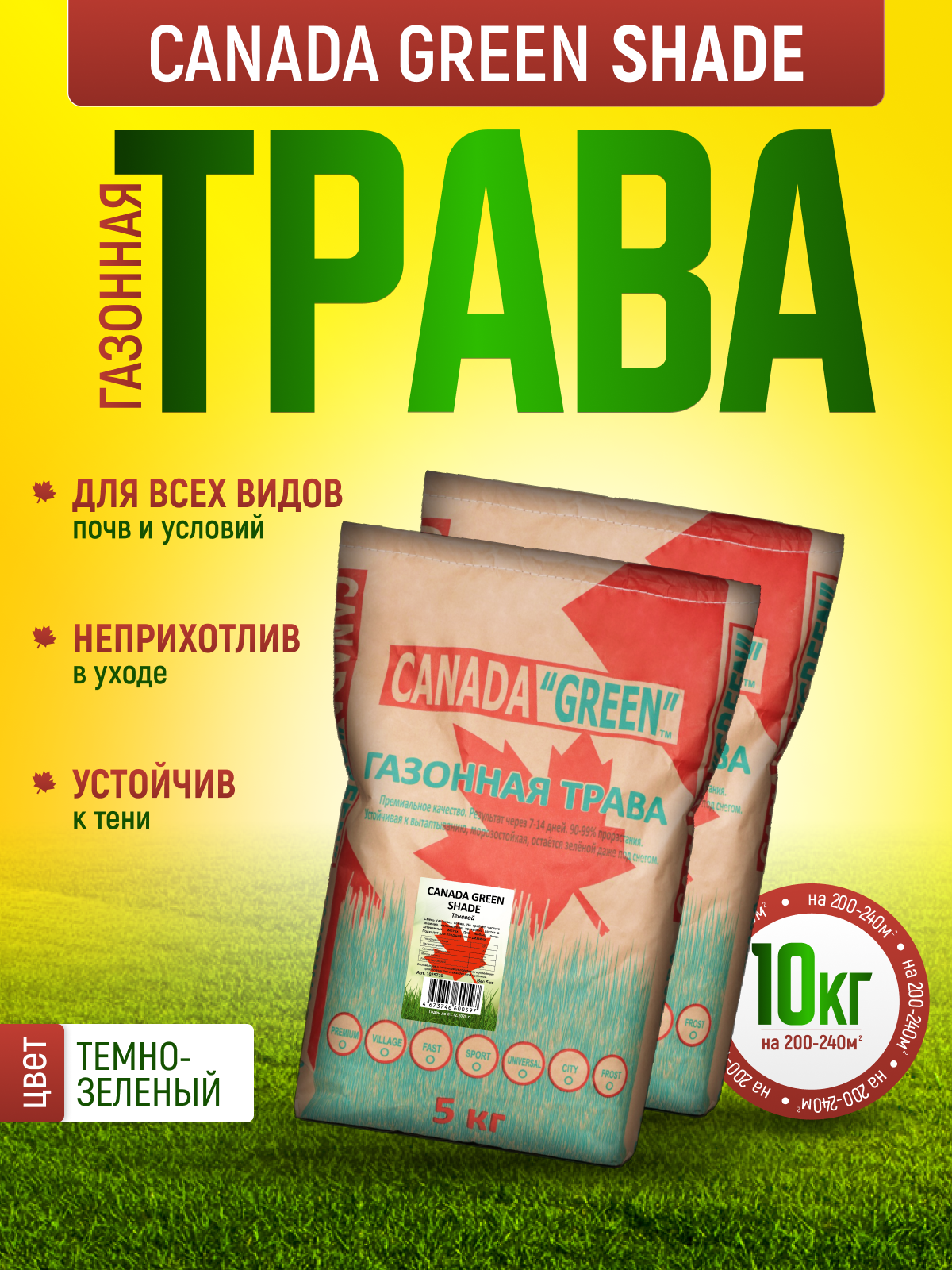 Газонная трава семена Канада Грин Теневыносливая 10кг / Теневая 10 кг / Canada Green Shade 10 кг интересное: